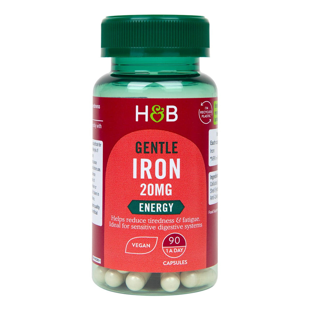 Holland & Barrett Gentle Iron capsules provide essential iron while remaining easy on the stomach. Iron is the body's most abundant mineral, playing a key role in vital bodily processes. This formulation supports energy levels and overall wellbeing through essential mineral delivery.