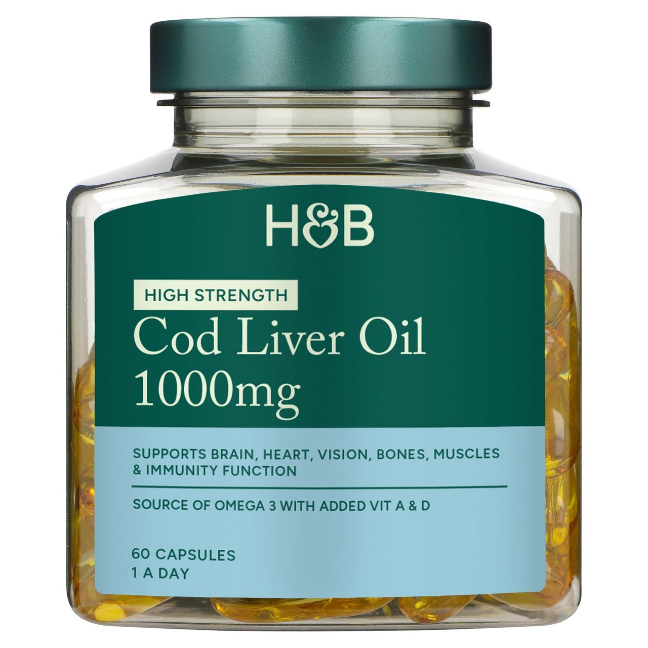 Holland & Barrett Cod Liver Oil capsules are formulated with essential Omega 3 fatty acids, EPA and DHA, which support vital bodily functions. This preparation also provides Vitamins A and D, contributing to overall wellbeing and maintenance. These capsules offer a convenient way to supplement key nutrients daily.