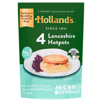 Hollands 4 Lancashire Hotpots offer a convenient, traditional meal experience featuring tender beef and sliced potatoes in a rich gravy base. This ready-to-heat dish is carefully crafted without artificial colours, flavours, or MSG for a straightforward, classic taste. It serves as a satisfying main course suitable for quick preparation throughout the week.