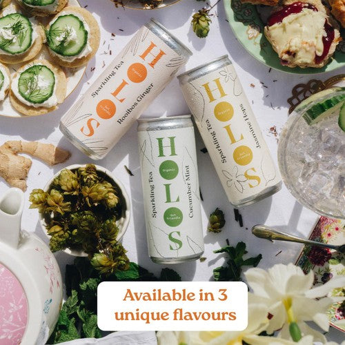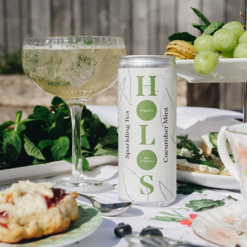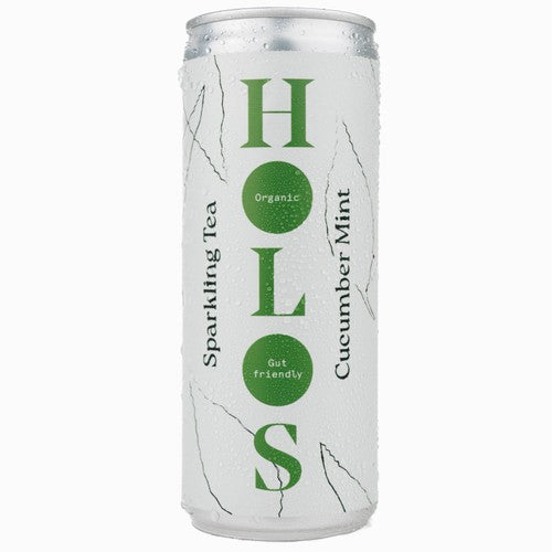 HOLOS Organic Sparkling Tea offers a delicately brewed and beautifully balanced cold tea experience. This lightly sparkling beverage is both refreshing and nourishing, featuring cool cucumber and mint notes. It is formulated without any artificial additives or sweeteners for a clean taste.