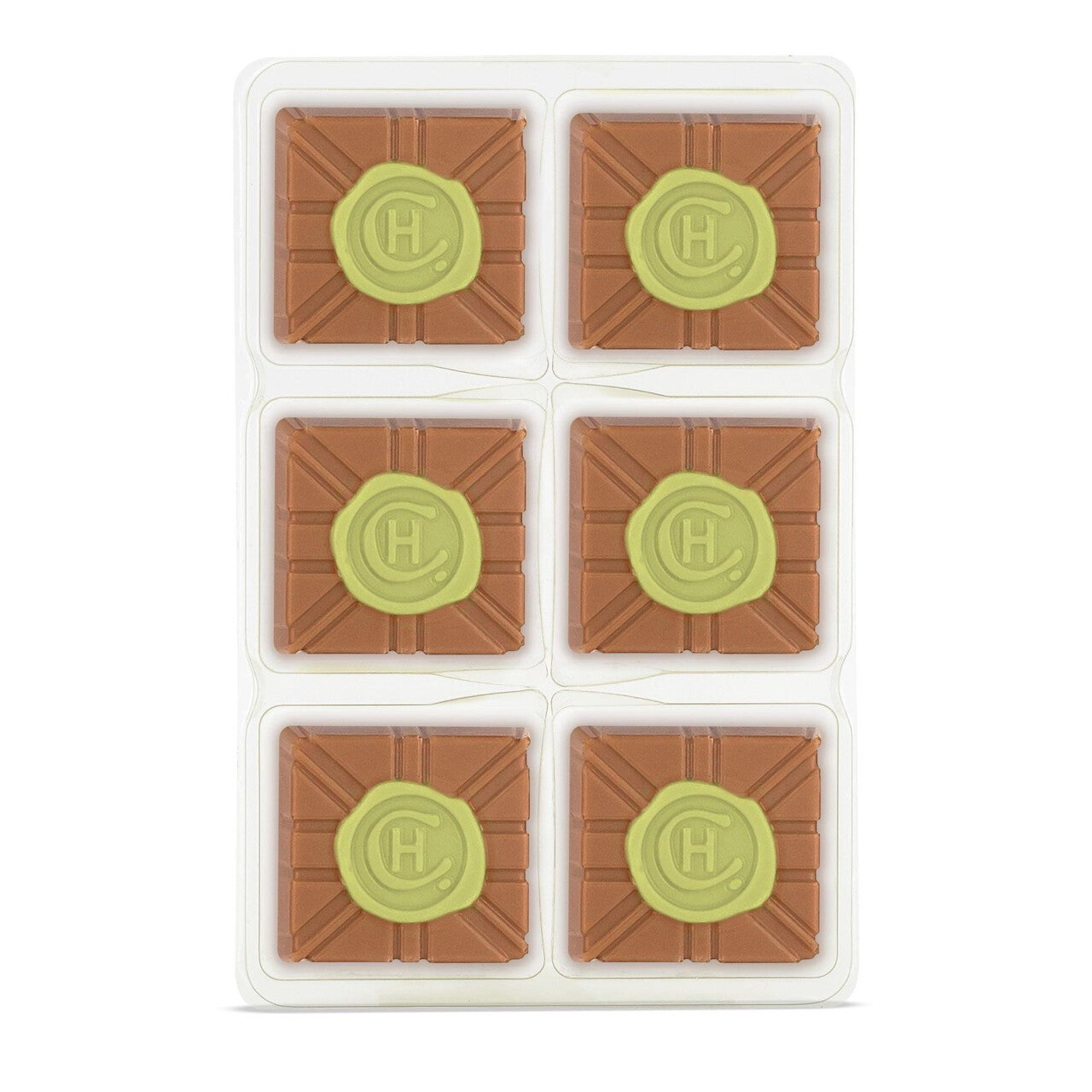 Indulge in the rich and satisfying taste of the Hotel Chocolat Pistachio Praline Selector. This selection features squares of super-smooth milk chocolate expertly sealed around a creamy pistachio praline centre. The flavour profile balances rich nuttiness with a satisfyingly not-too-sweet finish, making it highly moreish.