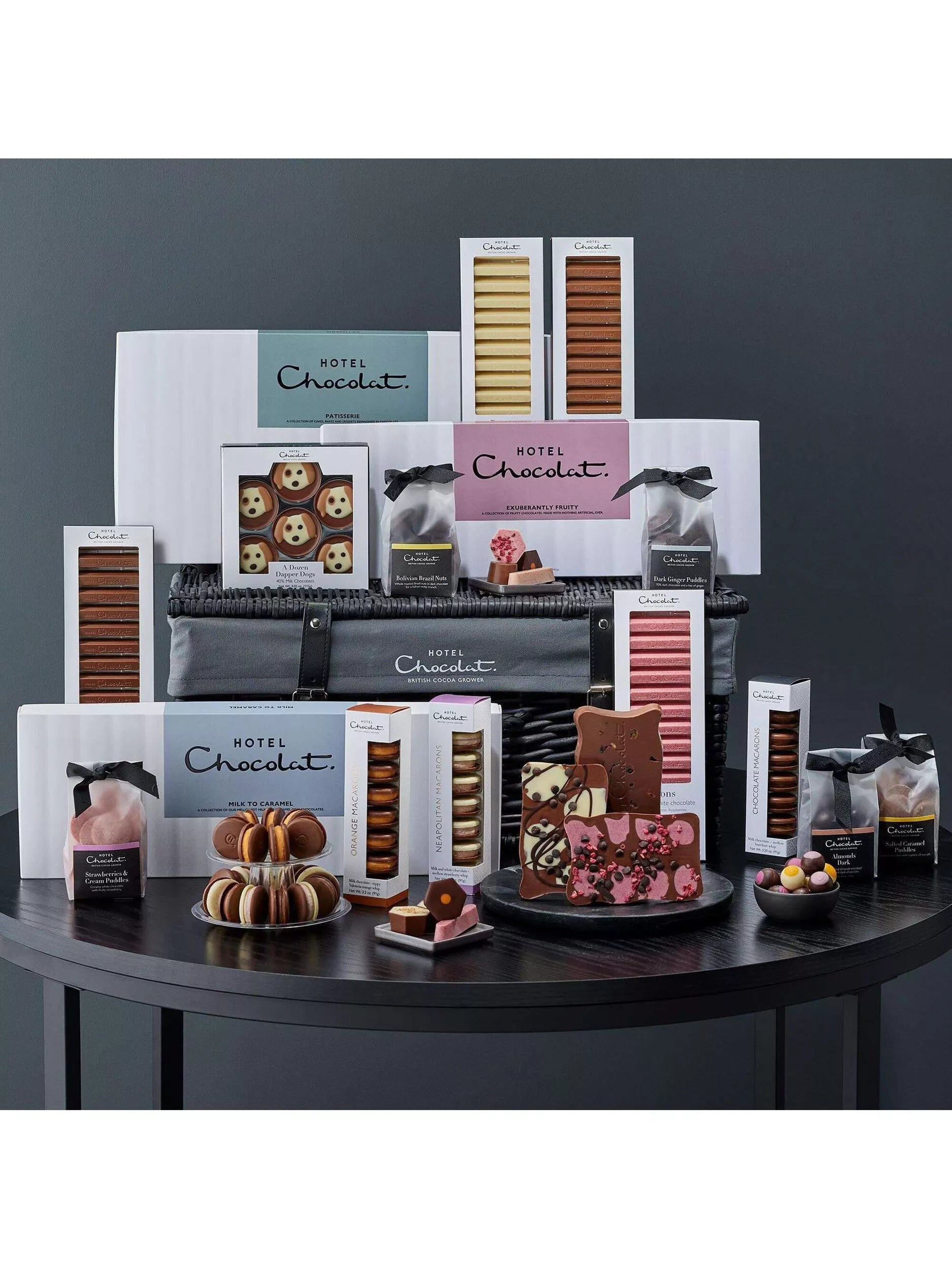 Presented in a keepsake wicker basket, this hamper will take you or your lucky recipient on a true chocolate flavour adventure. Experience the decadently deep taste of dark chocolate perfectly paired with nuts. Savour the authentic, bold flavours of chocolates packed with real fruit. Sink in to the mellow, buttery notes of comforting caramel chocolate - and so much more.