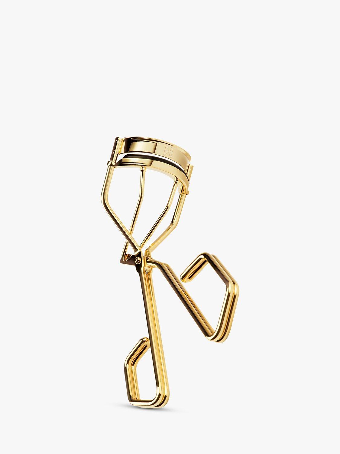 An architectural eyelash curler designed to open the eye with lifted lashes. Reaching even the tiniest lash, it gently creates a soft curl with staying power.