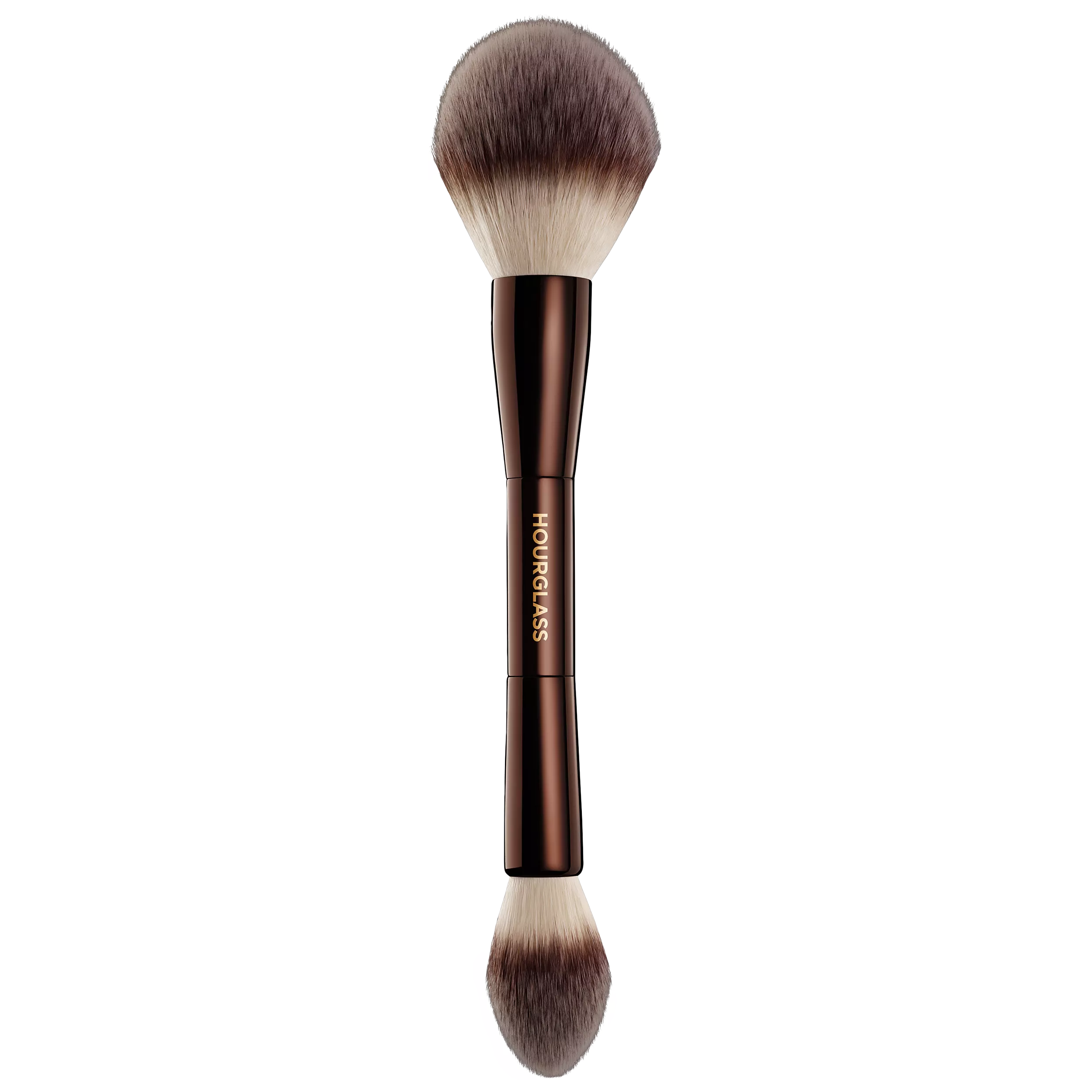 A double-ended brush custom designed to be used with Veil Translucent Setting Powder.