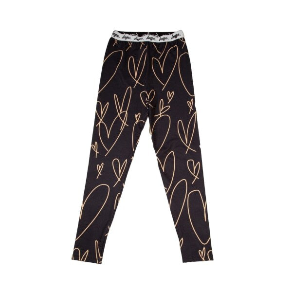 These Hype leggings offer comfort and style suitable for your active day. Crafted from a soft-touch material blend, they provide a snug, fitted look ideal for movement. The design features an eye-catching all-over print incorporating hearts and a distinctive scribble pattern throughout.