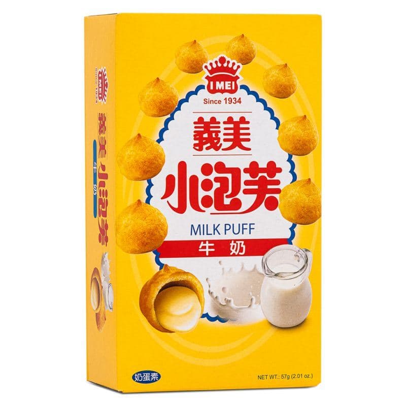 Indulge in the delightful lightness of I Mei Milk Puffs, a delightful treat perfect for any sweet craving. These airy puffs, filled with a creamy milk filling, offer a satisfying and convenient dessert option.
