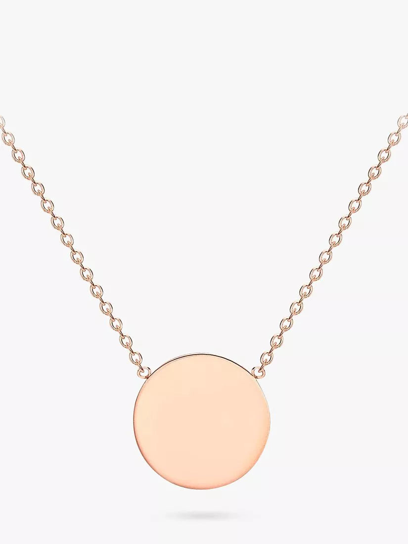 Create a lasting keepsake with this personalized 9ct rose gold disc pendant necklace. Perfect for celebrating a special occasion or personal milestone, this elegant piece offers a unique touch of personalization.