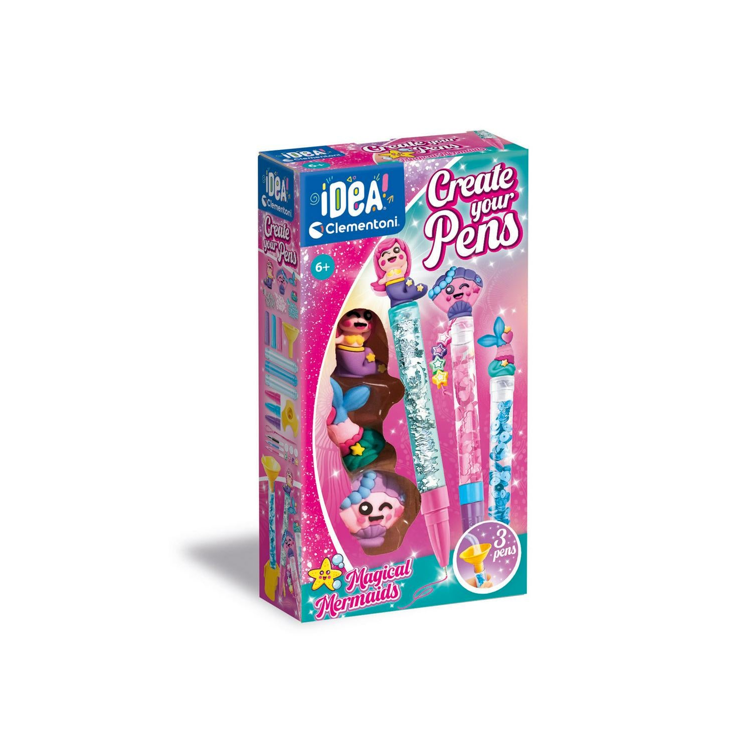 This original Clementoni Idea kit allows children to assemble and extensively personalise their own unique writing instruments. It offers a rich set of components that facilitate creative expression beyond simple decoration. This entire creative package was devised and designed in Italy, providing quality materials for hours of fun.