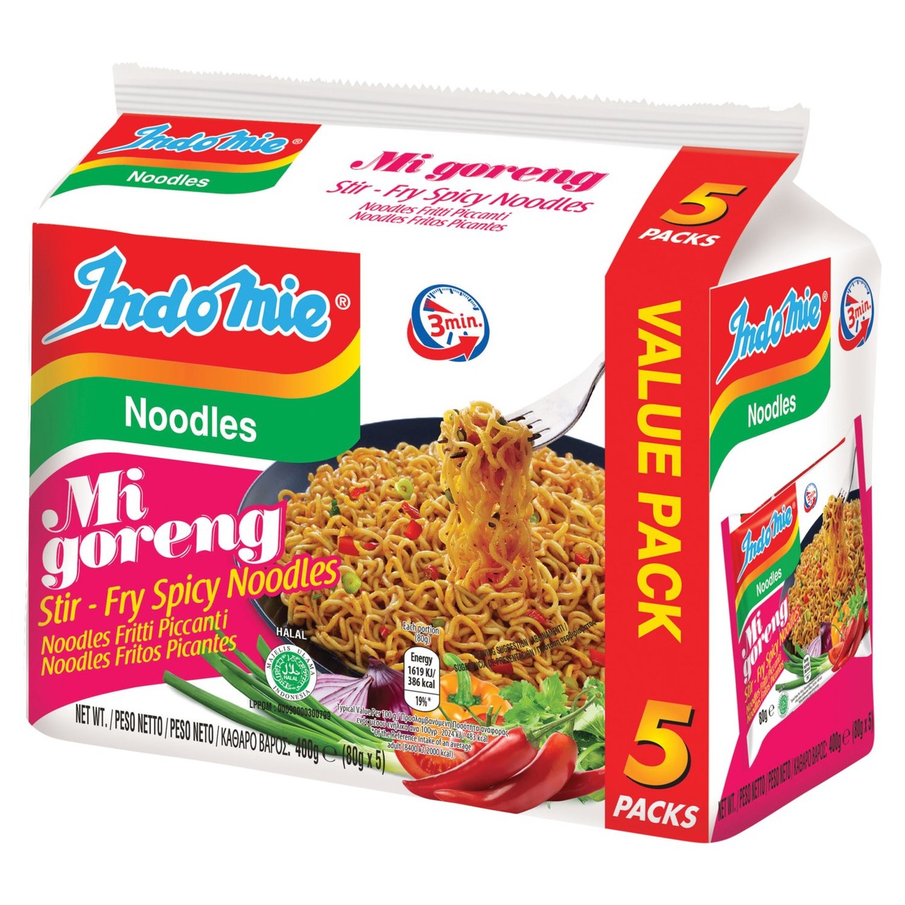 Indomie Mi Goreng Hot & Spicy offers a quick and flavourful stir-fry experience straight from the packet. This value pack contains five individual servings of authentic Indonesian-style noodles, ready in just three minutes. Enjoy the convenience of a satisfying meal that meets Halal dietary standards.