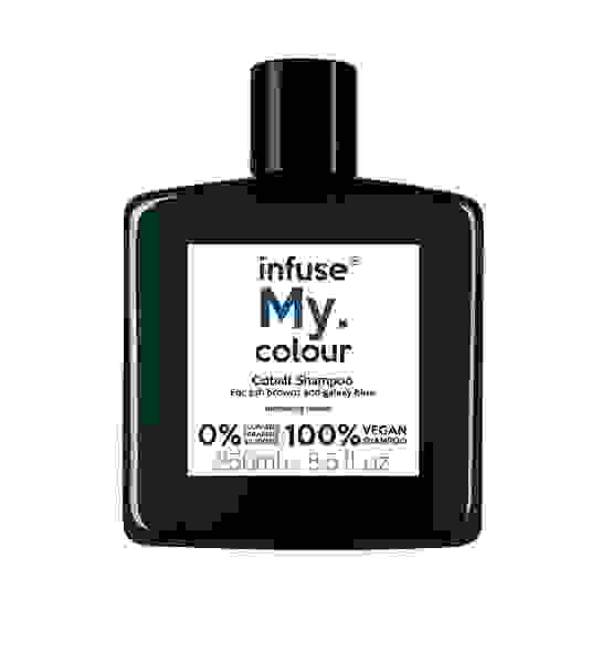 the perfect product to maintain your dark hair in between salon visits infuse my colour cobalt shampoo is intended for those with dark hair but can also be used by people with bleached or highlighted hair to achieve green and blue tones for those with black hair it will keep your hair inky black and for those with coloured dark brown hair it will neutralize red and orange tones100 vegan formula 0 sulphates 0 silicones 0 parabens apply a generous quantity of infuse my colour shampoo around double the quantity you would use of regular shampoo evenly rinse and repeat the shampoo procedure and follow with infuse my colour treat conditioner to comb through and rinse infuse my colour products have instant results so you can style your hair as normal once washed