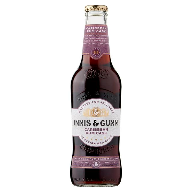 Product details Description Strong Beer. Aged 51 Days Matured for Spiciness Scottish Red Beer Caribbean rum casks meet Scottish red beer in an explosion of cool, spicy rum notes, vanilla and rich fruit. This is a beer to be savoured. It is Caribbean Rum Cask matured for spiciness and richness of flavour. Aromas of rum, Demerara, dried fruits and spice, warming malt character with hints of vanilla and oak. The bitterness is understated leaving plenty of room for a long spicy-sweet finish. This full bodied flavour is enhanced by the use of Innis & Gunn Ale Malt, Chocolate Malt and Roasted Barley. The finish in this one of a kind beer is warming yet mellow. We don't accept any borders or boundaries when it comes to our quest for innovation. We want to create flavour combinations that are worth crossing an ocean for. Our Innis & Gunn Caribbean Rum Cask offers just that. Rum Cask-Matured Red Beer. 10C Refund at Collection Depots in State/Territory of Purchase Mobius Loop Dietary Information Manufacturer Preparation Country of Origin Packaging Alcohol Storage Customer ratingWe deliver to over 120 countries || Whilst certain products cannot be delivered outside UK, some products may be subject customs and excise duties || We confirm if this product can be delivered to your location (outside the UK) when you enter your delivery address at checkout. If you are unable to checkout, please contact us via WhatsApp or email [email protected] to enquire if this product can be delivered to your location and to process your order via our live chat.