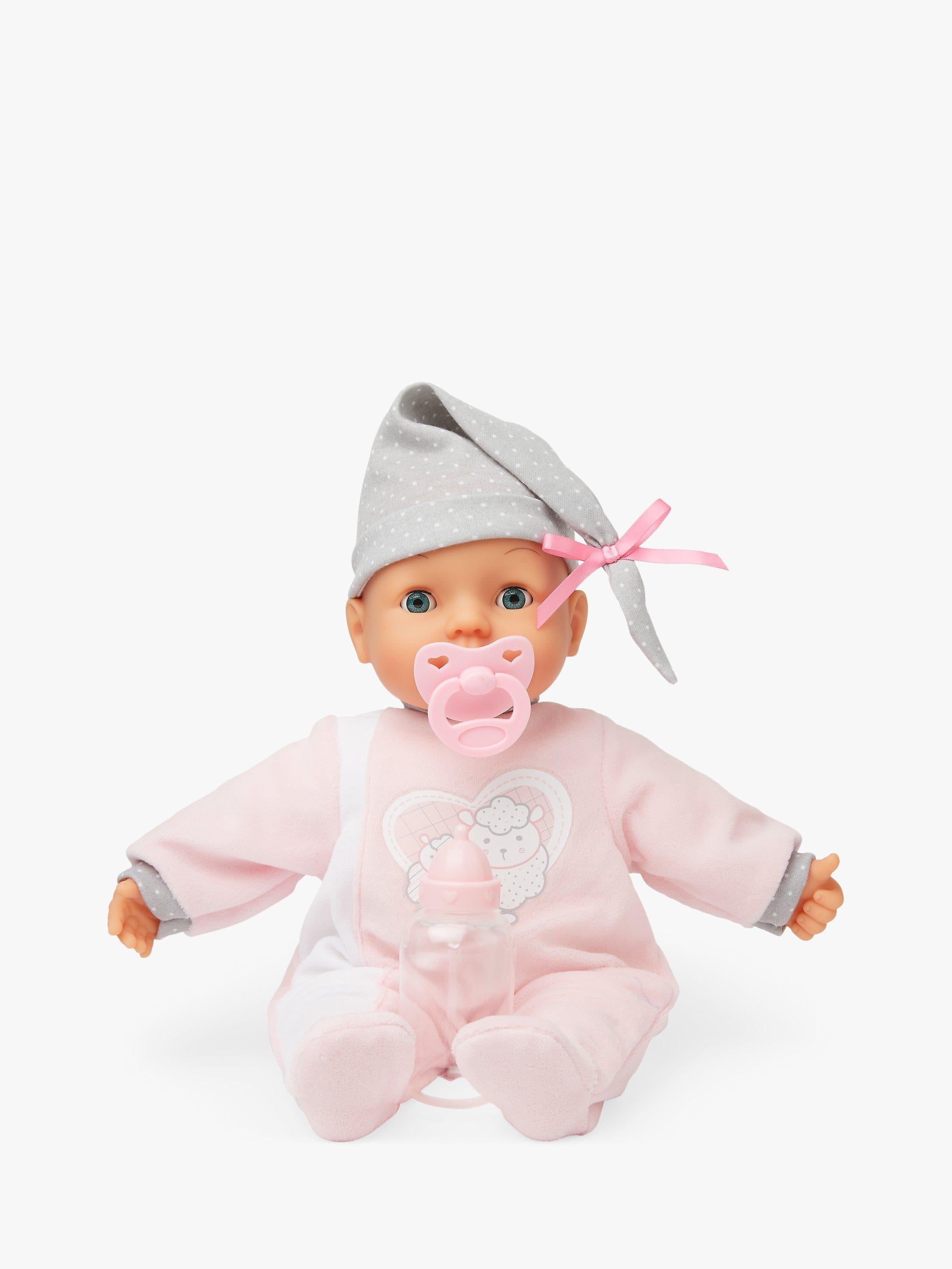 Give this little doll a bottle and watch it move its mouth. Lay it down to sleep and watch its eyes close as it drifts off to dreamland. This adorable little baby makes a whole range of cute noises including laughing, drinking, burping and crying!