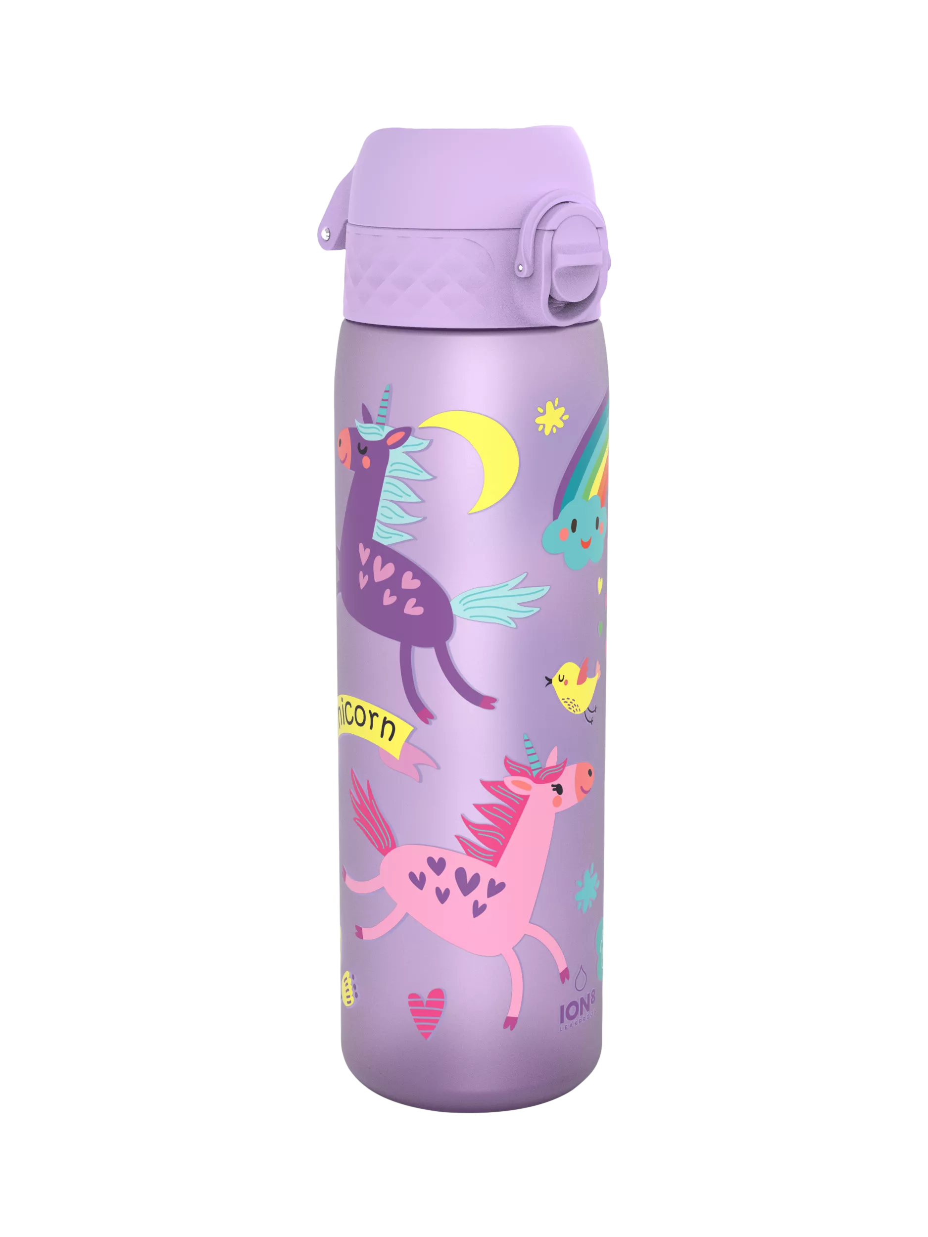 Slim and leak-proof, this unicorn-print drinks bottle from Ion8 easily fits in a bag to take with you on your travels for hydration on the go. It fits into all car cup holders and pockets on kid and adult backpacks. When closed, the spout and vent are completely sealed to prevent leaks.