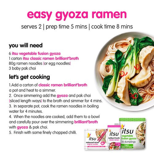 Enjoy the rich flavour of authentic Japanese cuisine quickly at home with itsu's Classic Ramen Brilliant Broth. This ready-to-use carton is designed to yield two generous servings, making meal preparation simple and satisfying for any evening. The broth base provides a deep, savoury foundation for your homemade ramen bowls.