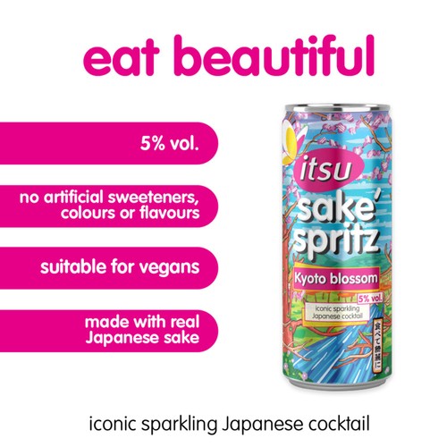 The itsu Kyoto Blossom Sake Spritz provides a refined, ready-to-drink experience using authentic Japanese Junmai sake.