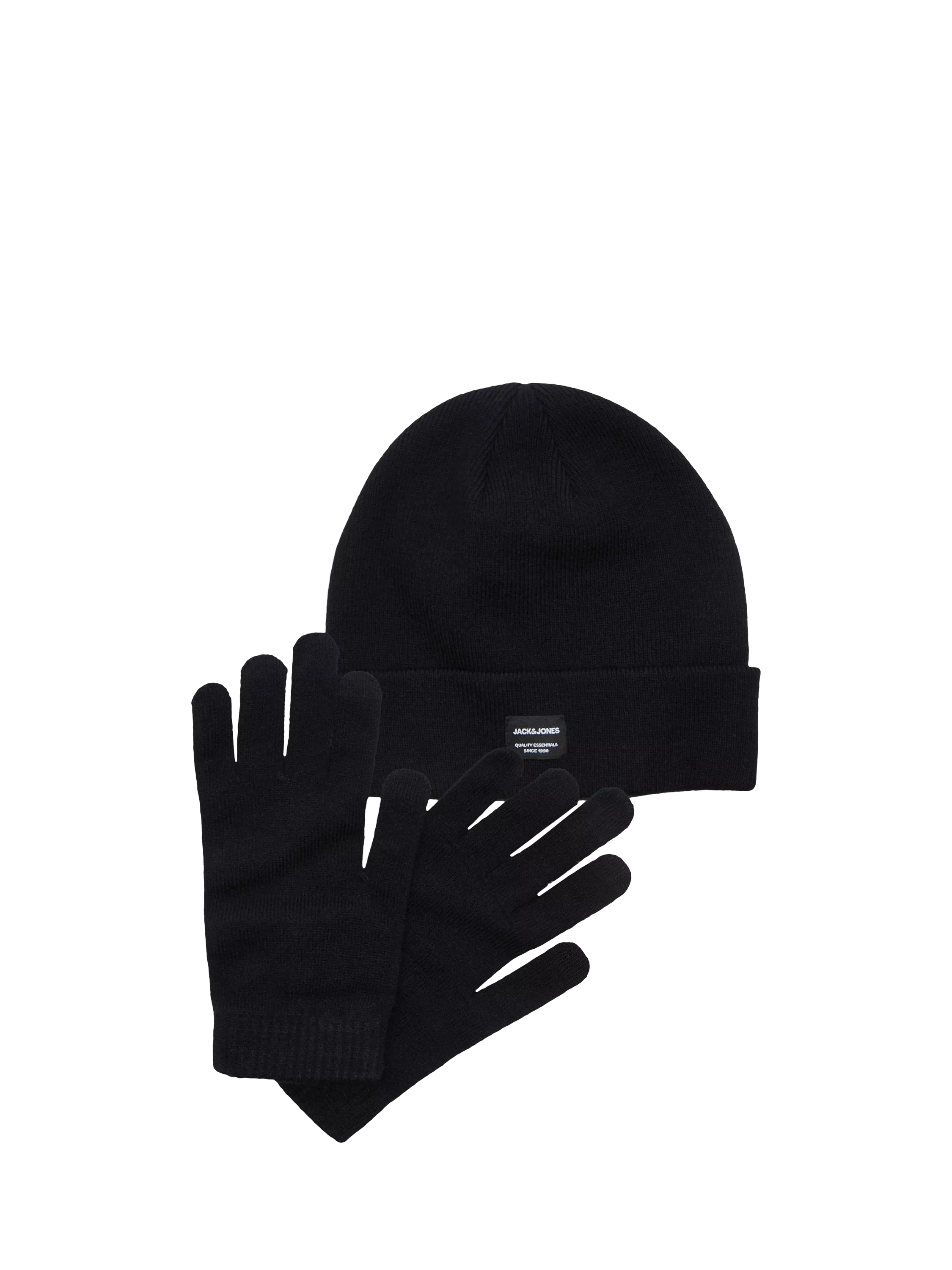 An essential set for winter, featuring a ribbed knitted beanie hat and matching gloves. The beanie is stretchy with vertical ridges and a turned-up cuff for a comfortable fit.