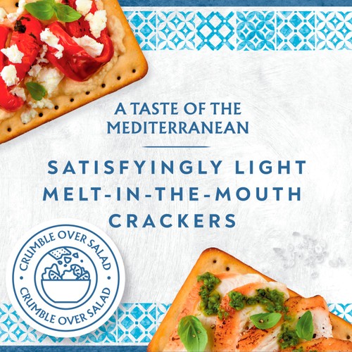 These Jacob's crackers are baked to deliver a distinct taste of the Mediterranean region in every bite. They feature a satisfyingly light texture that offers a genuine melt-in-the-mouth experience for snacking enjoyment. The subtle addition of salt enhances their overall flavour profile perfectly.