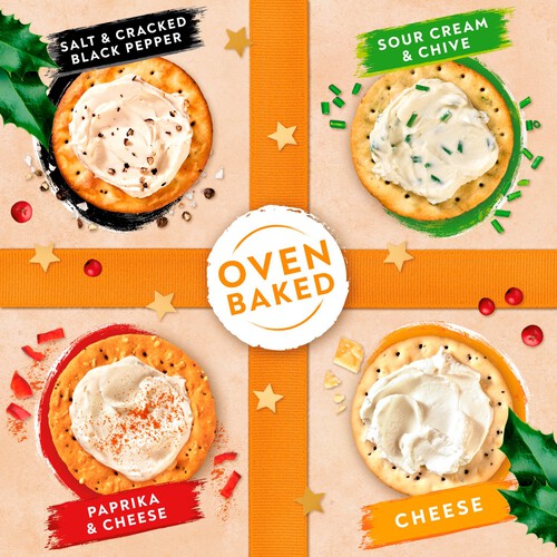 This Jacob's selection provides a varied assortment of textured, savoury crackers suitable for many occasions. The packaging contains four distinctly flavoured varieties designed to satisfy different cravings. This convenient package ensures variety for your next gathering or individual treat.