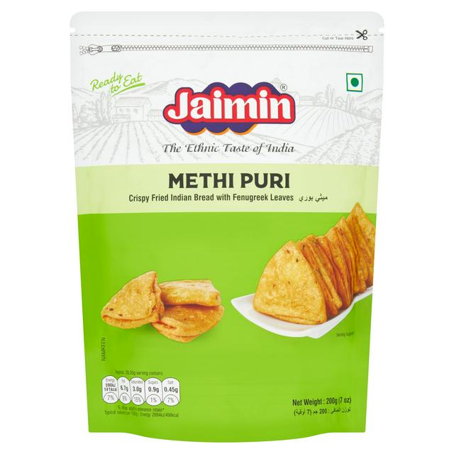 Product details Description Ready to eat The ethnic taste of India Crispy fried Indian bread with fenugreek leaves Suitable for vegetarians Packaged in a Protective Atmosphere. Tidyman Quick nutrition guide Approx. 28.35g serving contains Typical Values Energy 590kJ 141kcal Fat 6.7g Saturates 3g Sugars 0.9g Salt 0.45g % of an... Read More