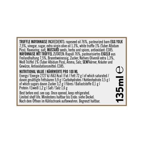 This luxurious truffle mayonnaise is made with the small white truffle, 'Tuber Albidum Pico'. Its smooth and delicate flavor adds a touch of elegance to any dish.