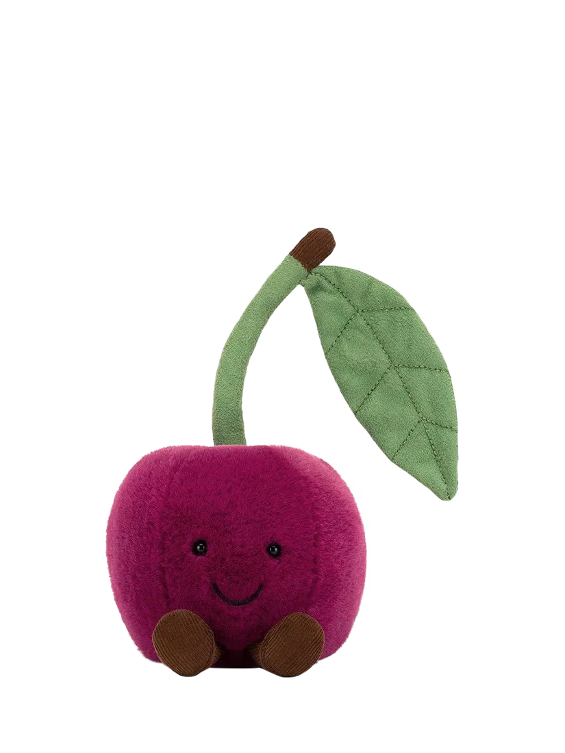Amuseables Cherry is a scrumptious pal with magenta fur and a friendly stitch smile. With cocoa cord boots, a two-tone stalk and a green embroidered suedette leaf, this cheeky berry brightens any desk.