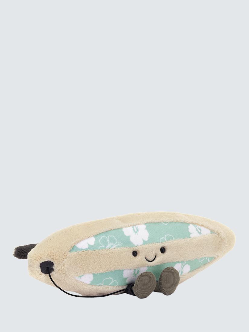 Read MoreCatch a wave with Amuseables Sports Surfboard. This smiling beige board has a teal tropical print deck, a soft grey fin, and matching fine cord legs with attached leash. A stitched smile and applique Jellycat logo on the back complete this totally sweet board.