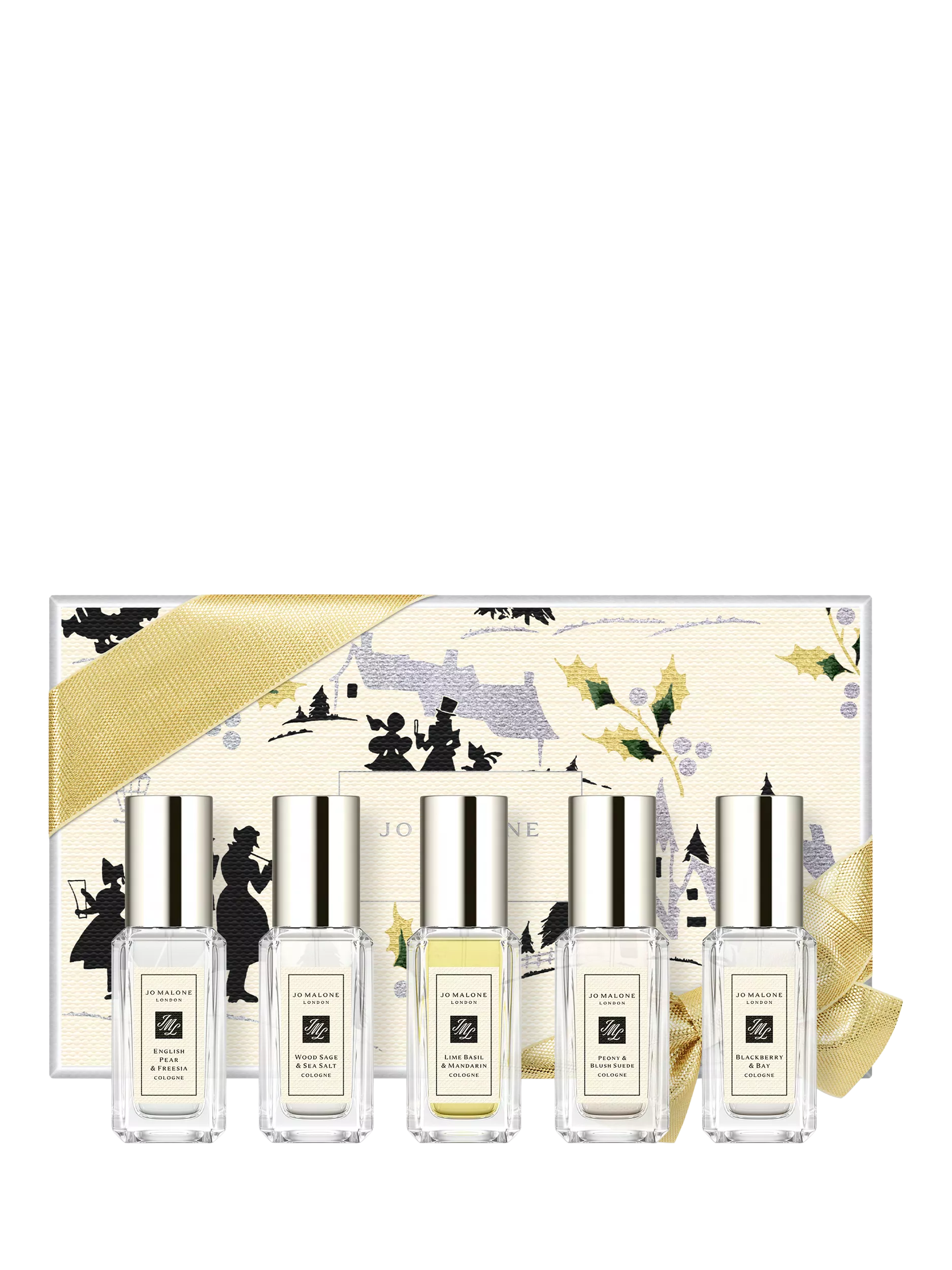 A timeless present for fragrance collectors, beautifully wrapped to place under the tree. Includes luscious English Pear & Freesia, fresh Wood Sage & Sea Salt and three other favourite colognes in 9ml bottles to wear individually or layer.