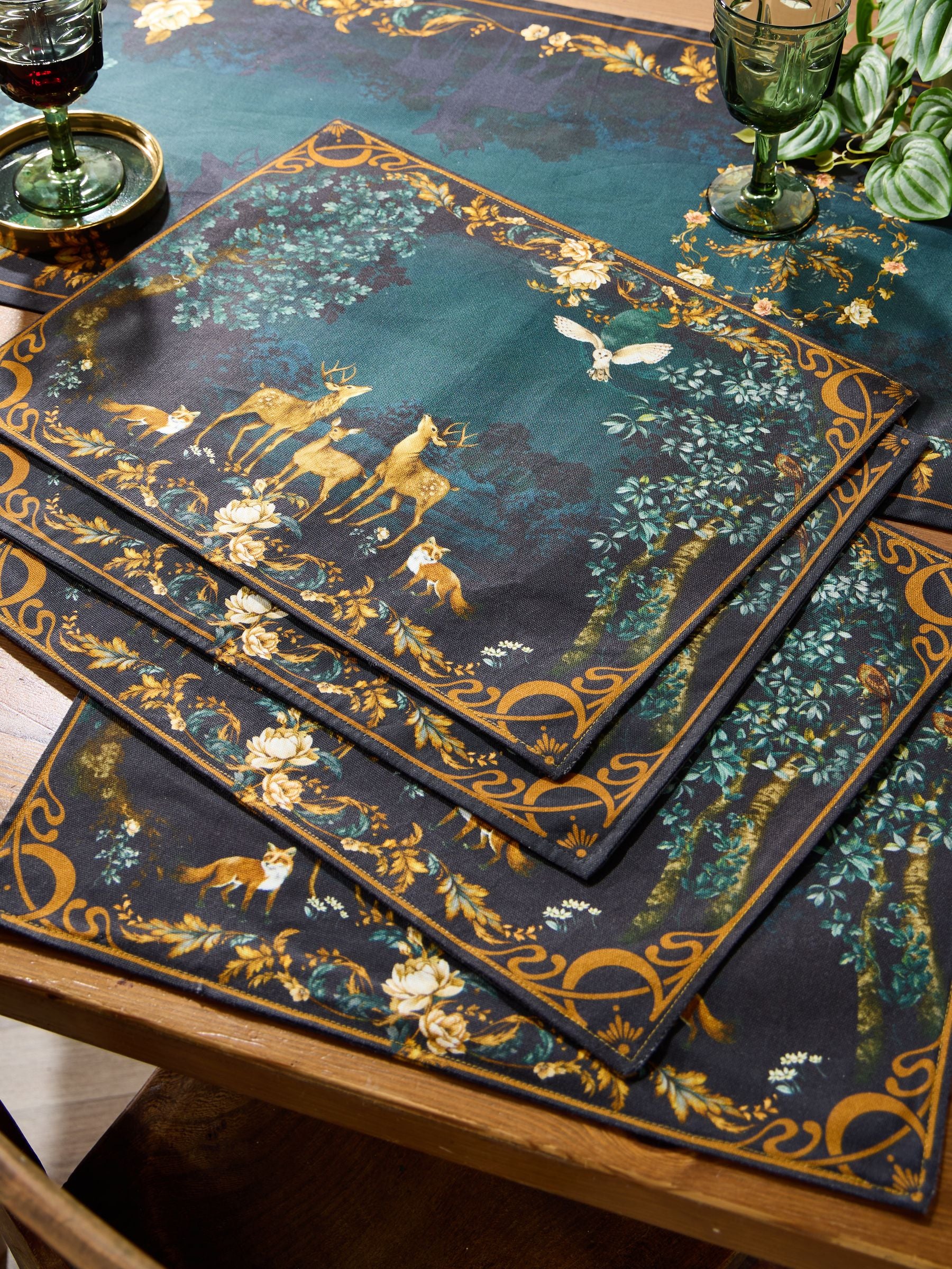 Home accessories that bring magic to every mealtime, these four placemats are oh so captivating. Pretty and practical in equal measure, they're not only heat-resistant, but they boast a stunning forest scene too. Full of intricate details, you’ll find more to love with every glance, especially when they're sat next to the matching table runner. Size: ONE.