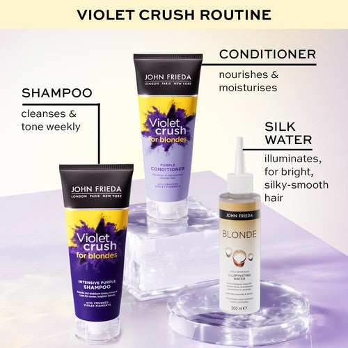 John Frieda Blonde Illuminating Water is formulated to restore silky smoothness specifically to lightened blonde hair. This lightweight formula works quickly, providing enhanced glossy shine while offering necessary protection against damage in seconds.