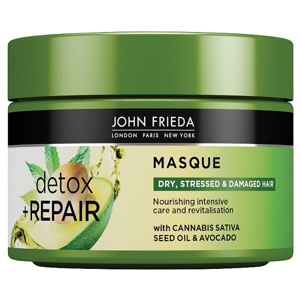 your hair is exposed to many daily challenges that could make it look stressed and lifeless styling product build up and environmental influences can strain hair and can reduce the effect of caring ingredients the john frieda detox repair collection frees up your hair from unwanted impurities and creates the perfect foundation for visible repair and immediate revitalisation transform dry stressed hair into healthy looking hair full of smoothness and shine the intensively caring formula of detox repair masque nourishes hair for immediate revitalisation lifeless dull hair is infused with new energy and visibly repaired with antioxidant rich green tea and nourishing avocado oil