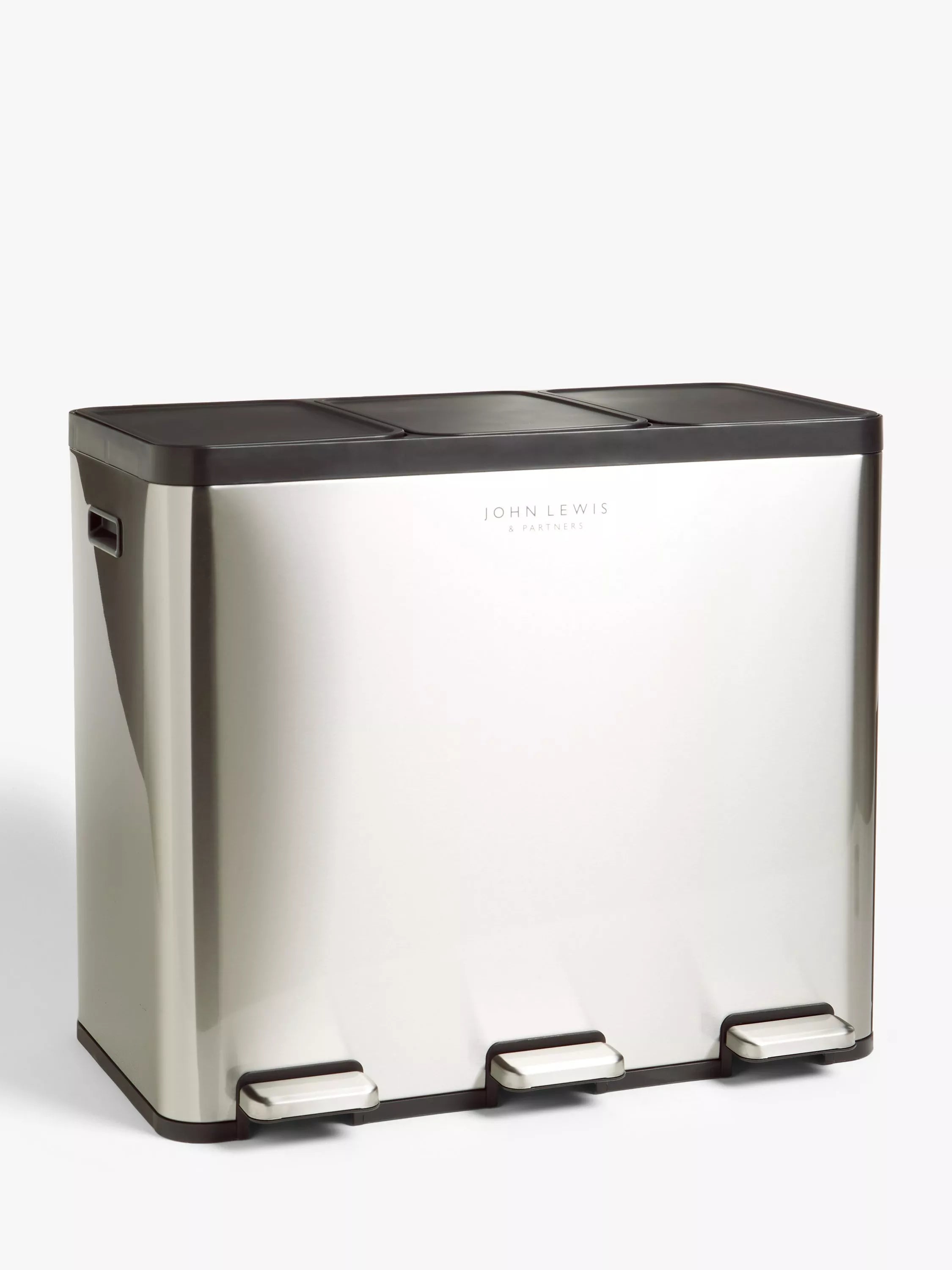 This pedal-operated recycler offers three separate compartments for easy separation of waste and recycling.