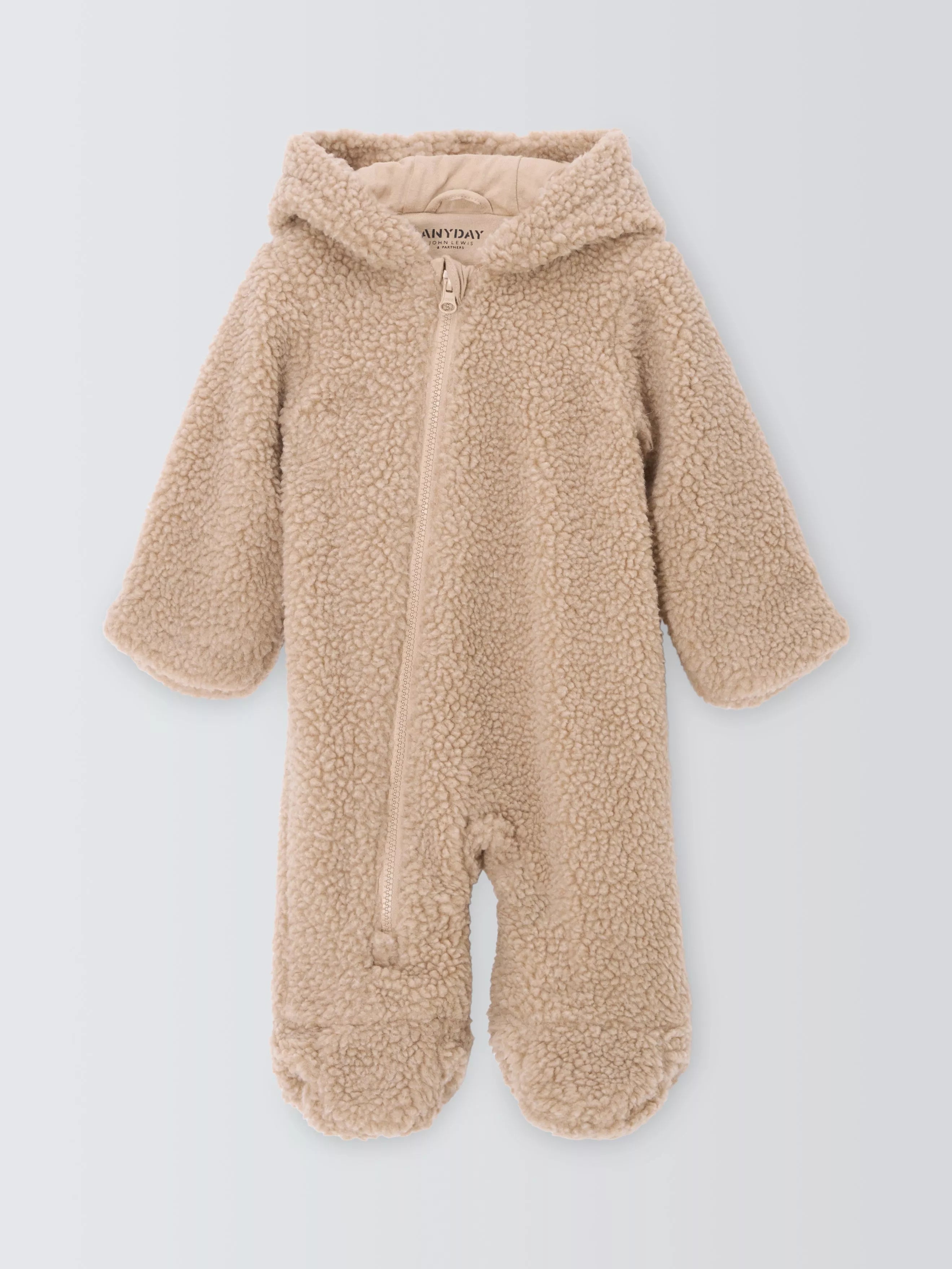 Keep them warm in this soft borg pramsuit. With a teddy bear ear hood, zip closure and enclosed feet keep little toes cosy.