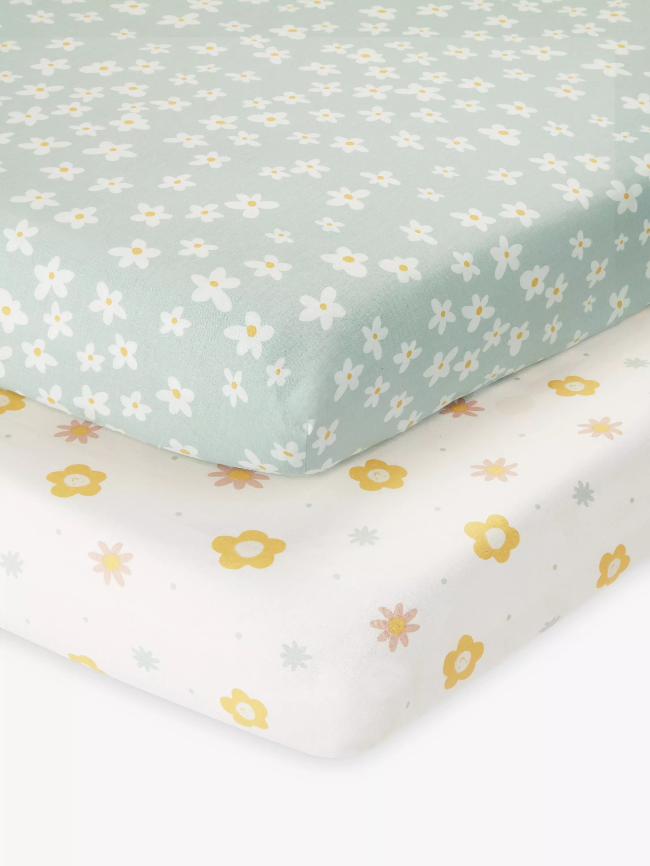 Invigorate your nursery with pretty floral prints with this two-pack of sheets from our ANYDAY collection. A key part of a good night's sleep, our fitted cot and cotbed sheets are made from soft and breathable cotton that is kind to delicate skin.