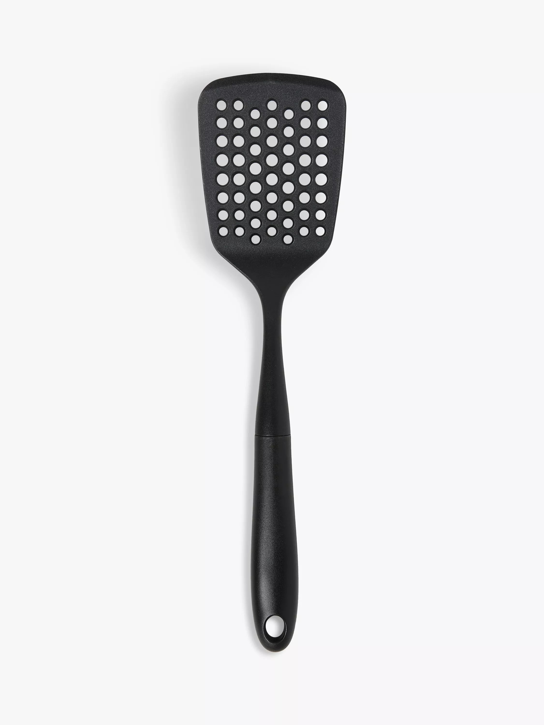 This slotted turner has a heat-resistant nylon head, making it suitable for use with all cookware surfaces, including non-stick.