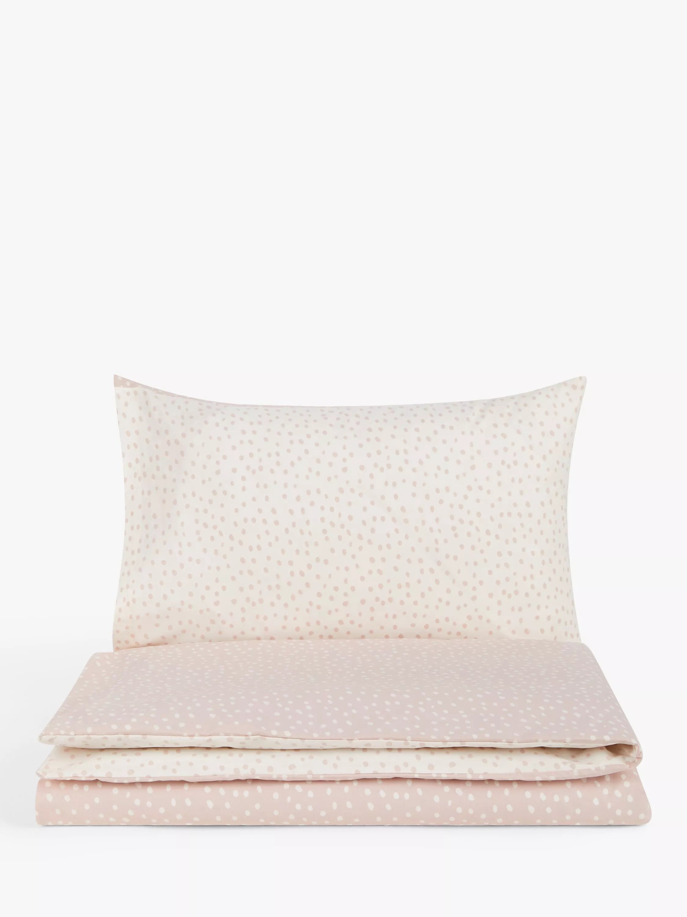 Designed with versatility in mind, this duvet cover and pillowcase set can be used on either side and features a timeless spot print that fits into most decors.