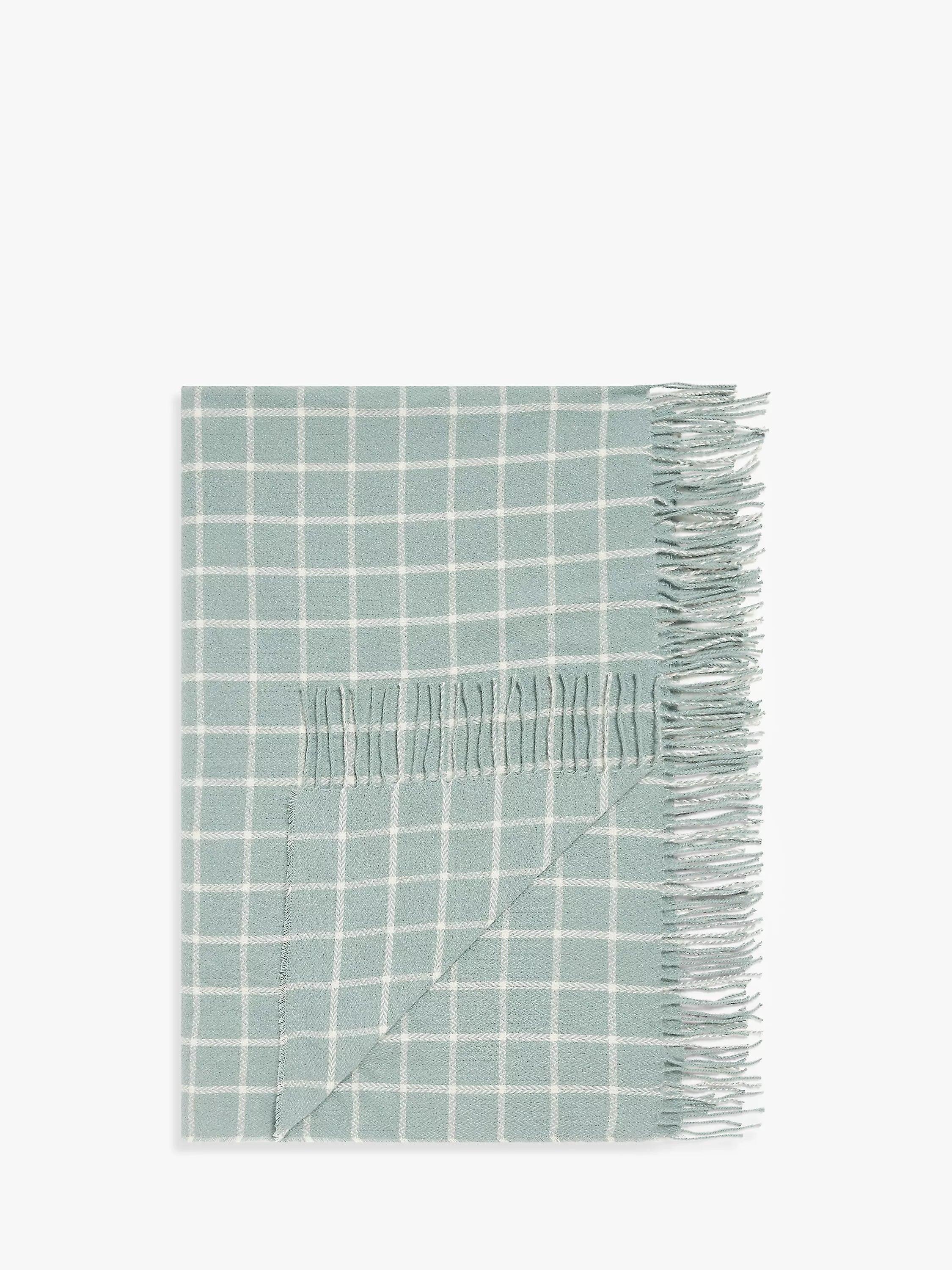 A soft and lightweight throw with a twisted fringe and versatile check pattern.