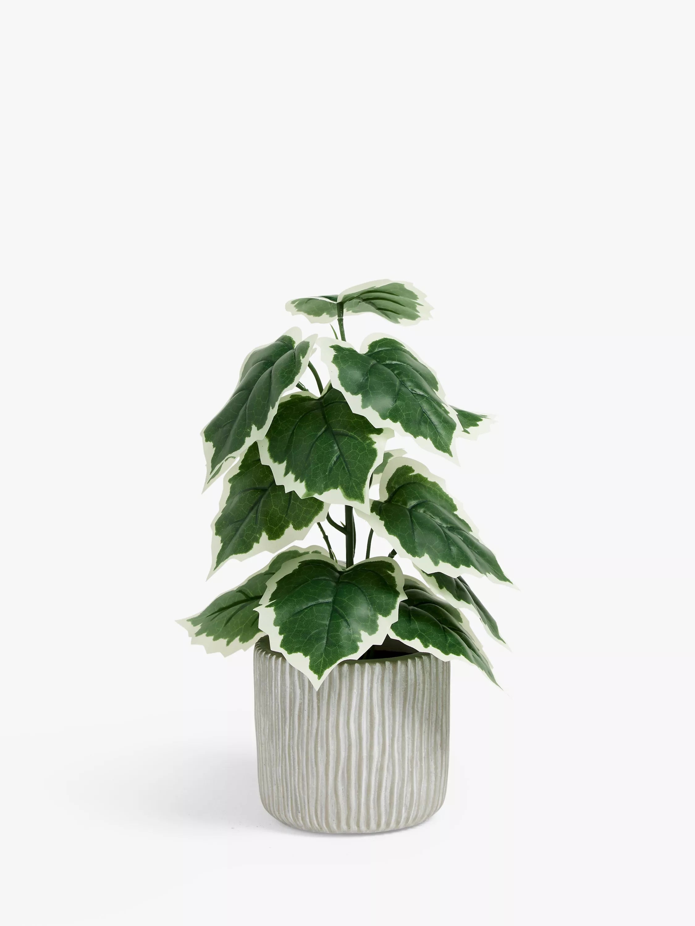 Bring a sense of nature home with this artificial variegated fig plant in a ribbed cement pot, a striking contrast of texture and tone. Very low maintenance — just give it a little dust now and then.