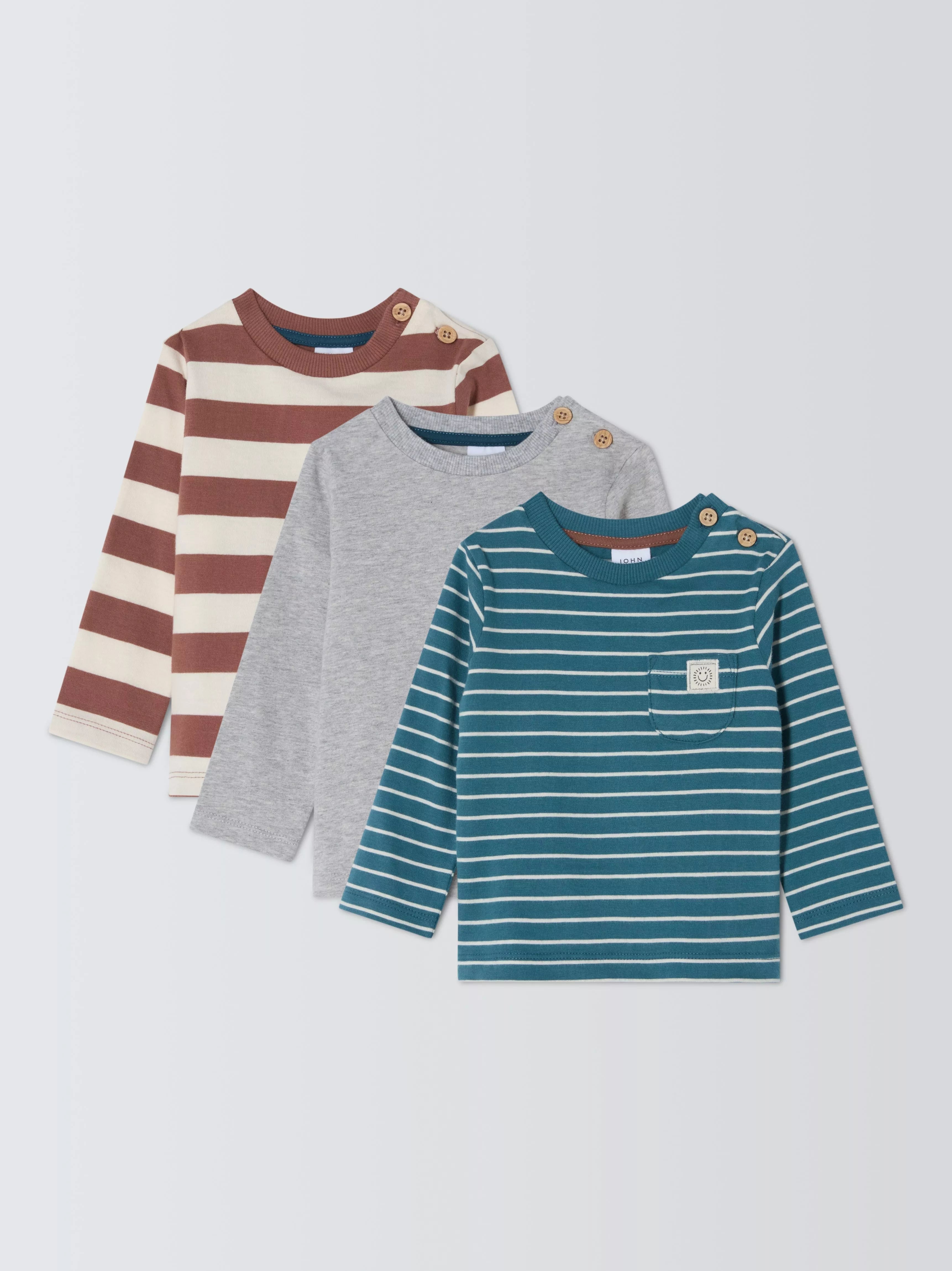 A pack of three long-sleeve tops, each made from cotton that's kind to delicate skin and featuring buttons at the shoulder for easy dressing.