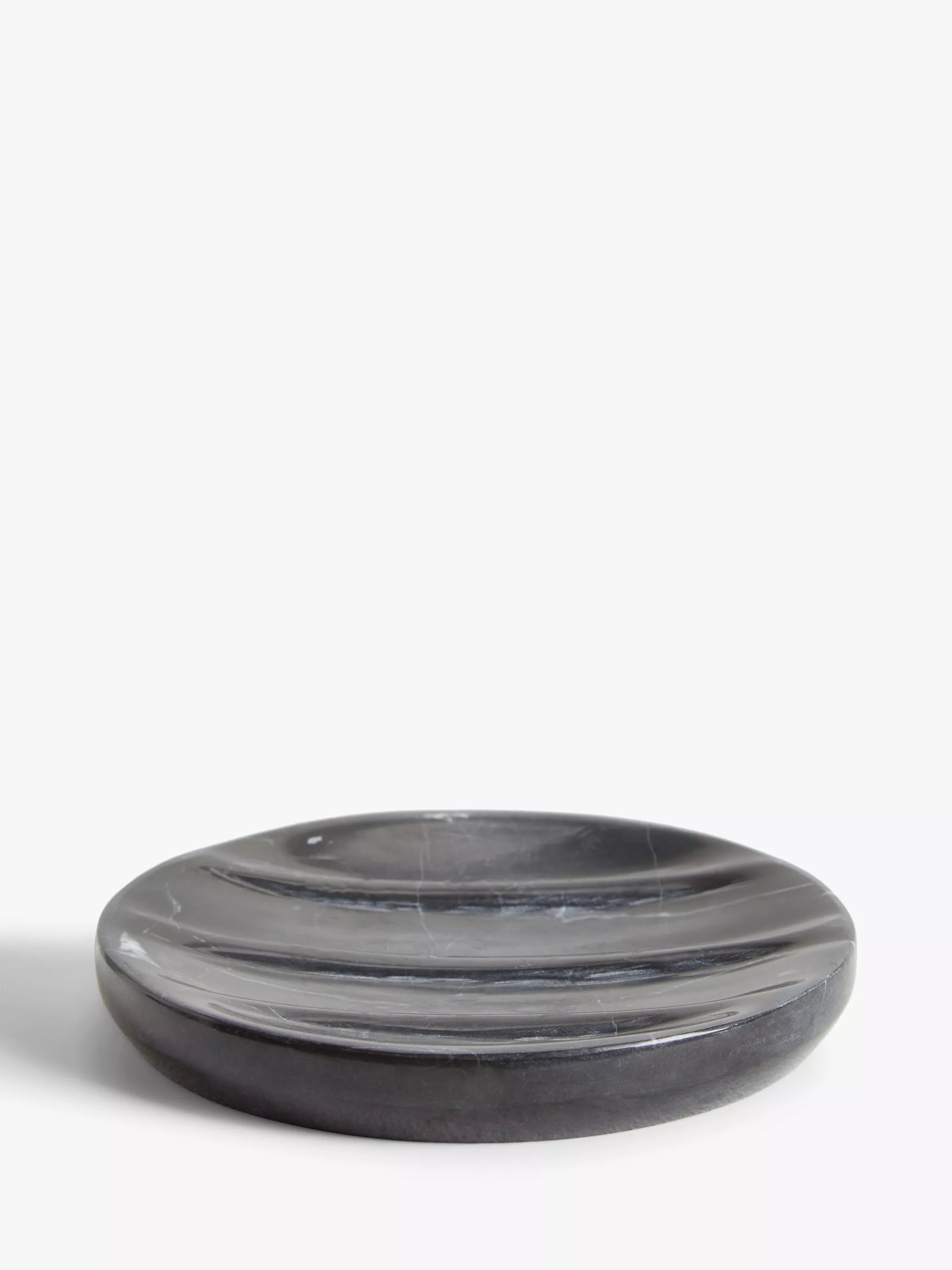 We've given our marble accessory tray a modern reboot by using a dark colouring instead of traditional white. The black marble has a fine compact grain and white veins running throughout the body, creating a sophisticated overall look. As each one is individually handmade, there may be some variations in the finish with some pieces having more veins than others, which adds to the beauty and character of the product.