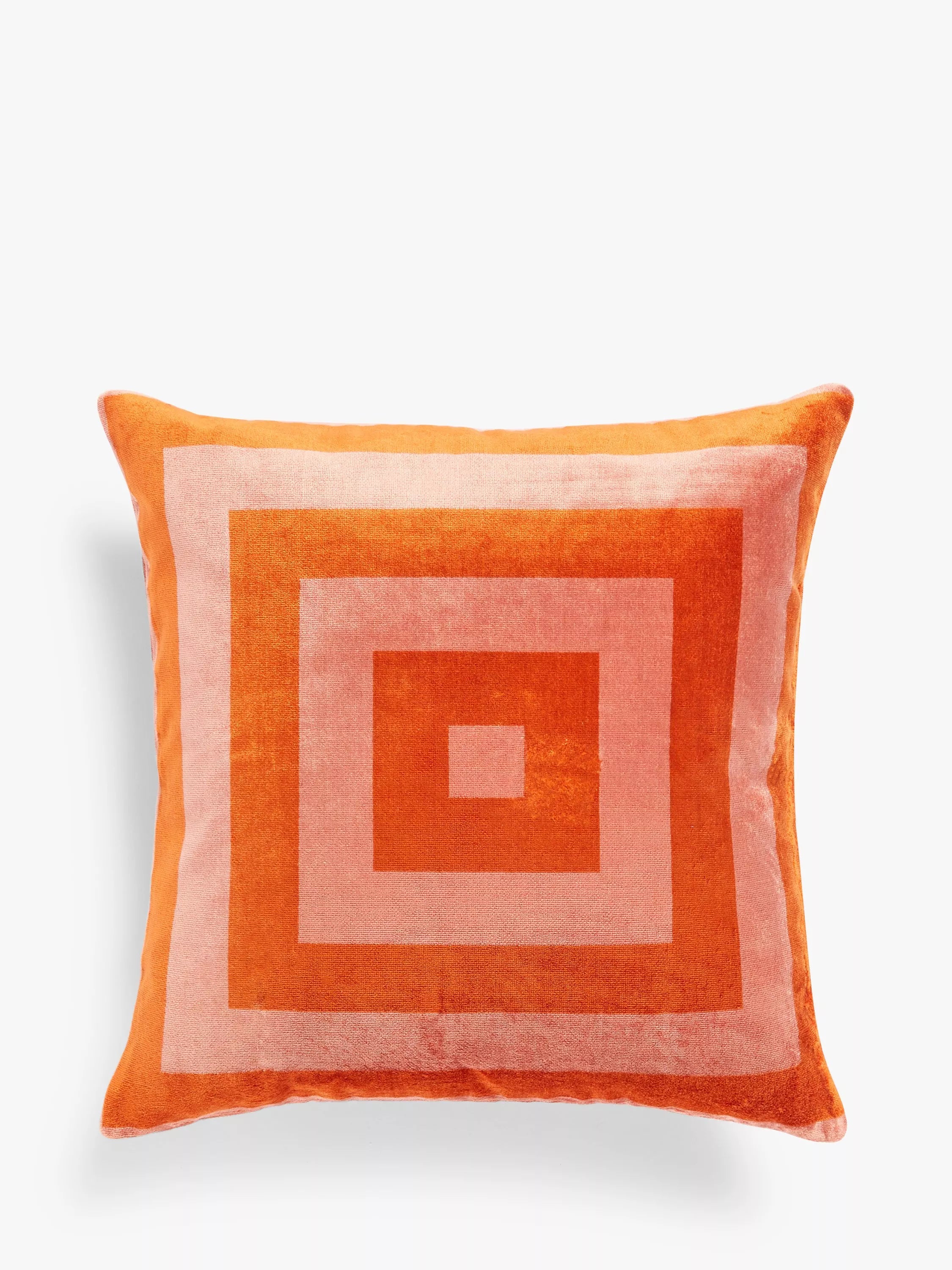 A colourful, concentric square design on dense, premium quality velvet sourced from Belgium.