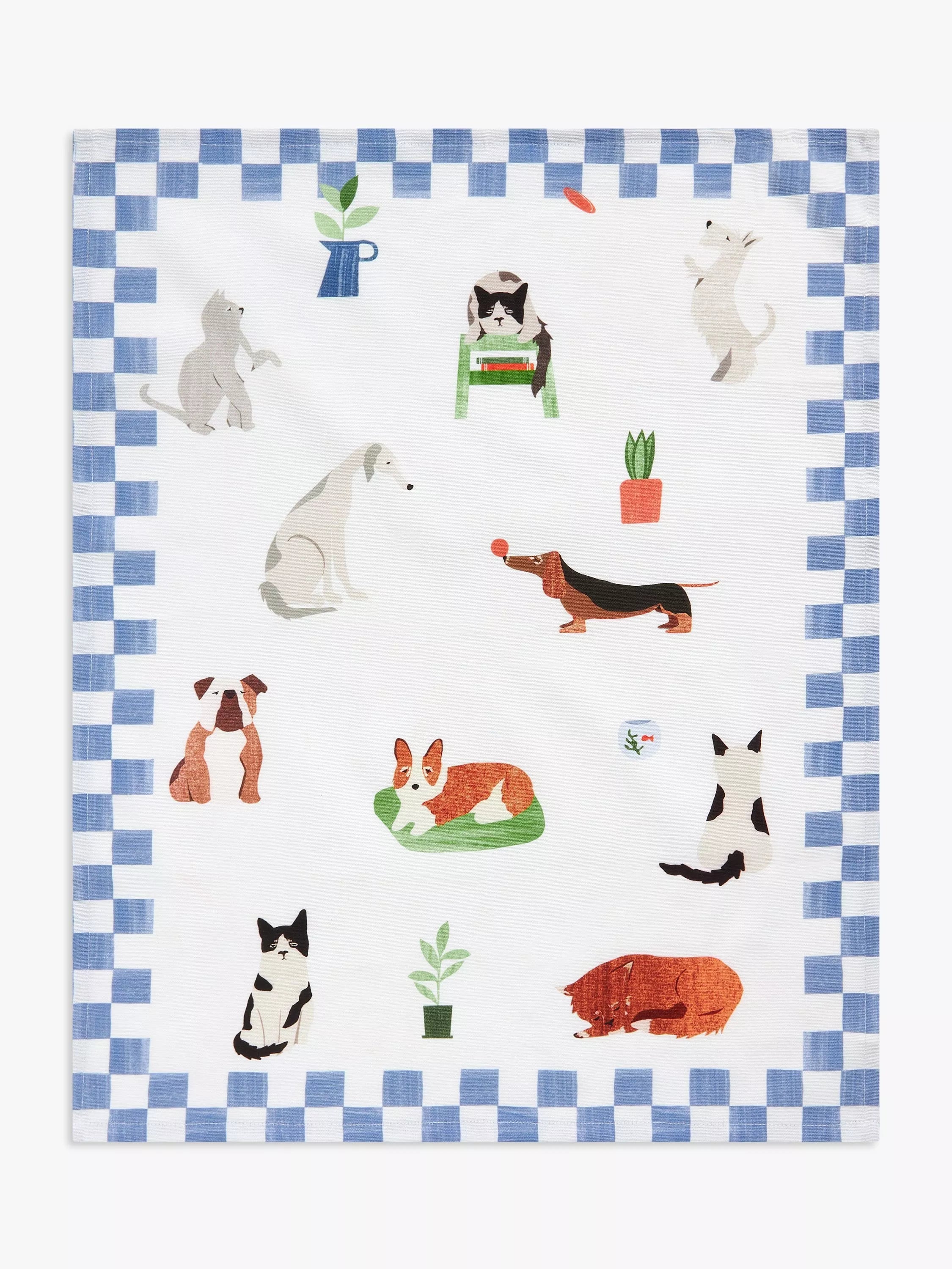 Cotton tea towel for pet lovers, with a Cats & Dogs print. Machine washable for easy cleaning.