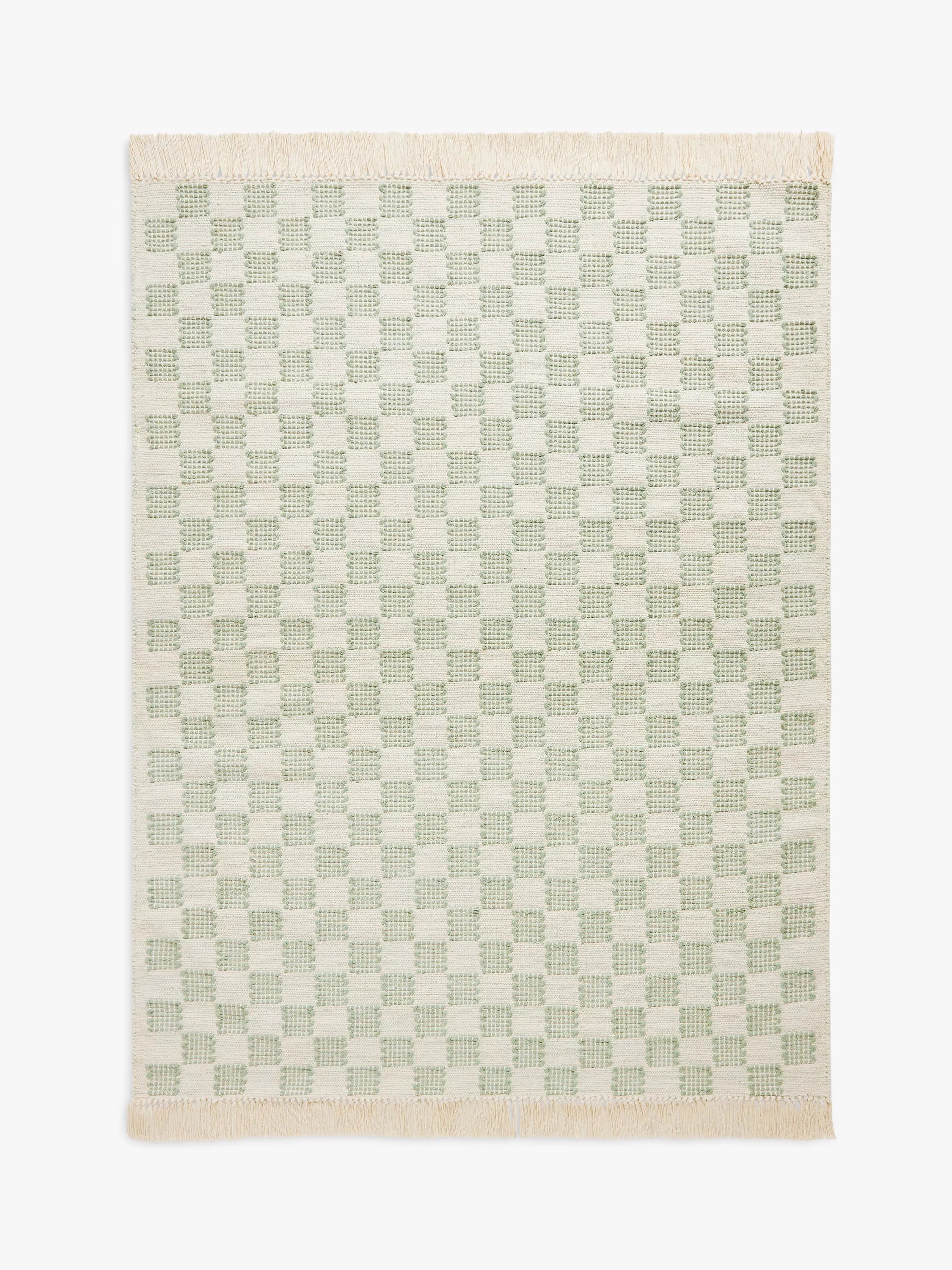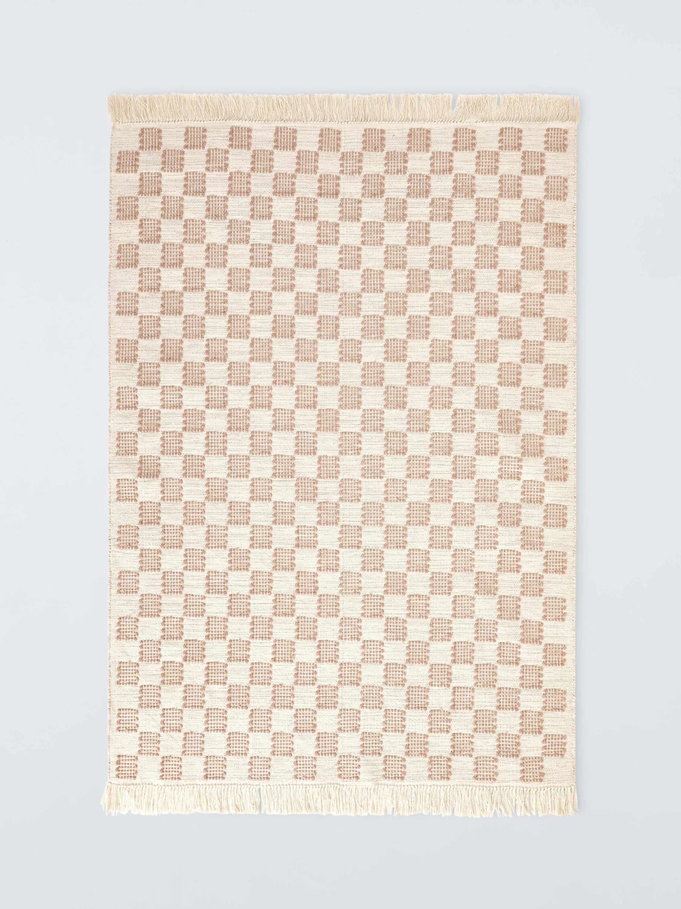 This cotton rug with a natural checkered pattern will perfectly compliment any existing décor element making it an effortless and easy addition to your kid's room.