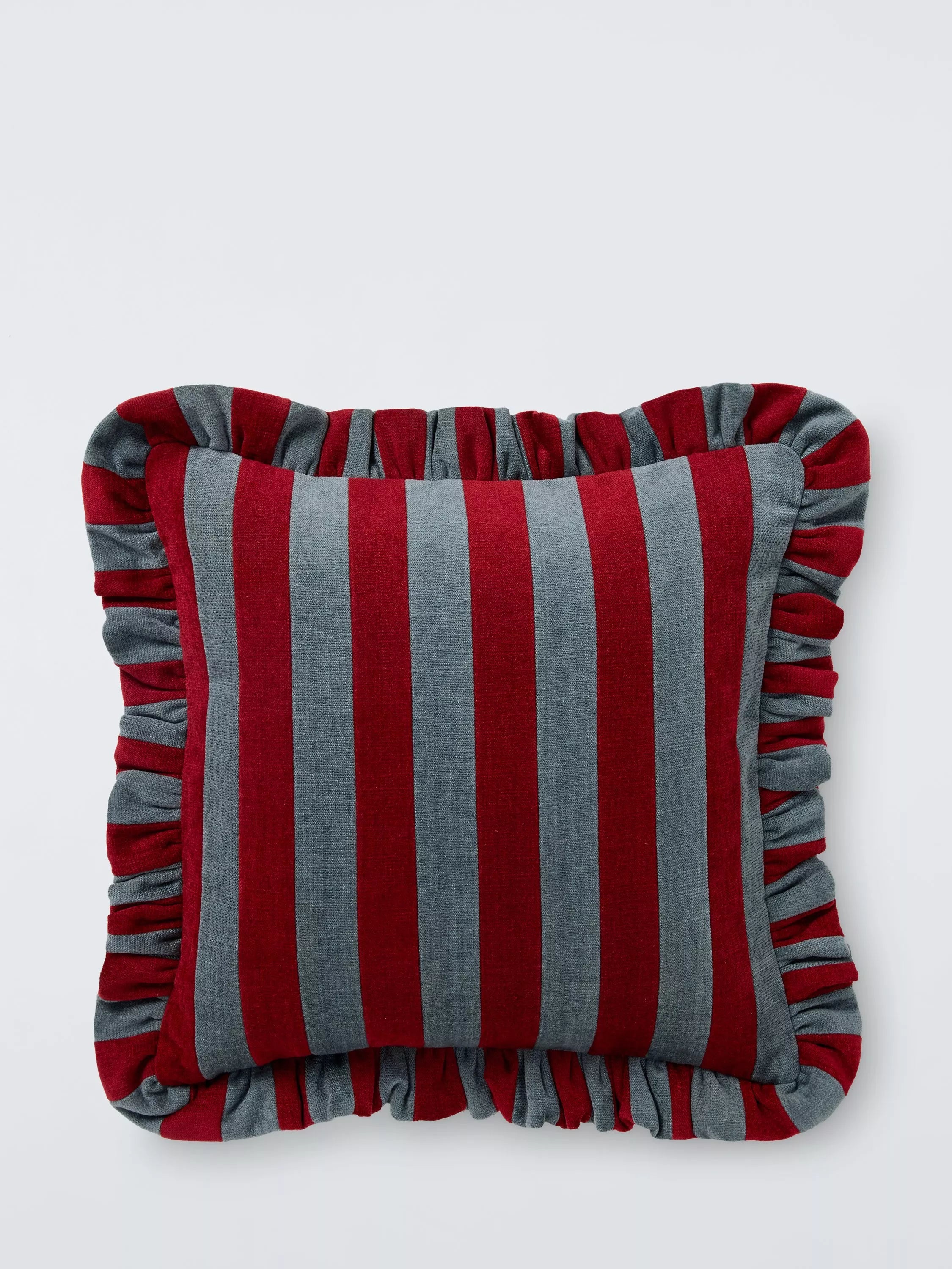 A plump and luxurious chenille stripe cushion with a frilled edge.