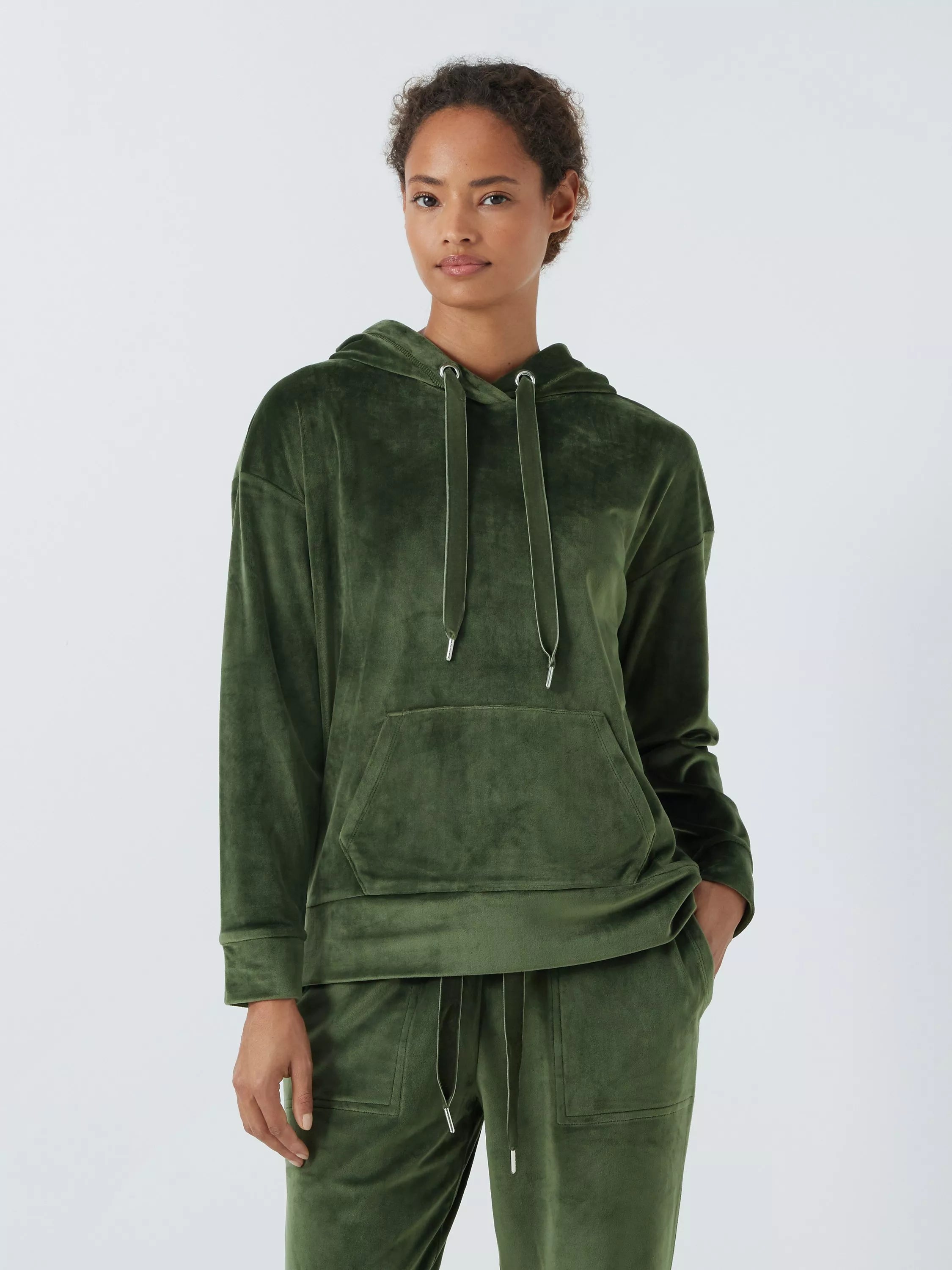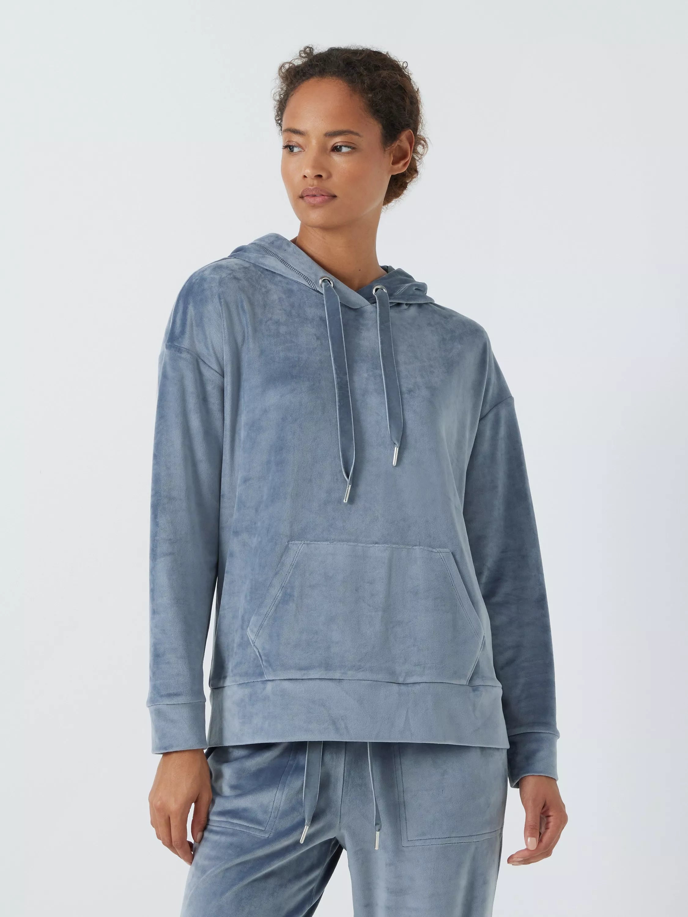The classic pullover hoodie features kangaroo pockets to the front and is made from velour so it has the right balance of warmth, durability and a soft sheen that looks and feels great. We've also added velvet ribbon strings at the hood for a premium feel.