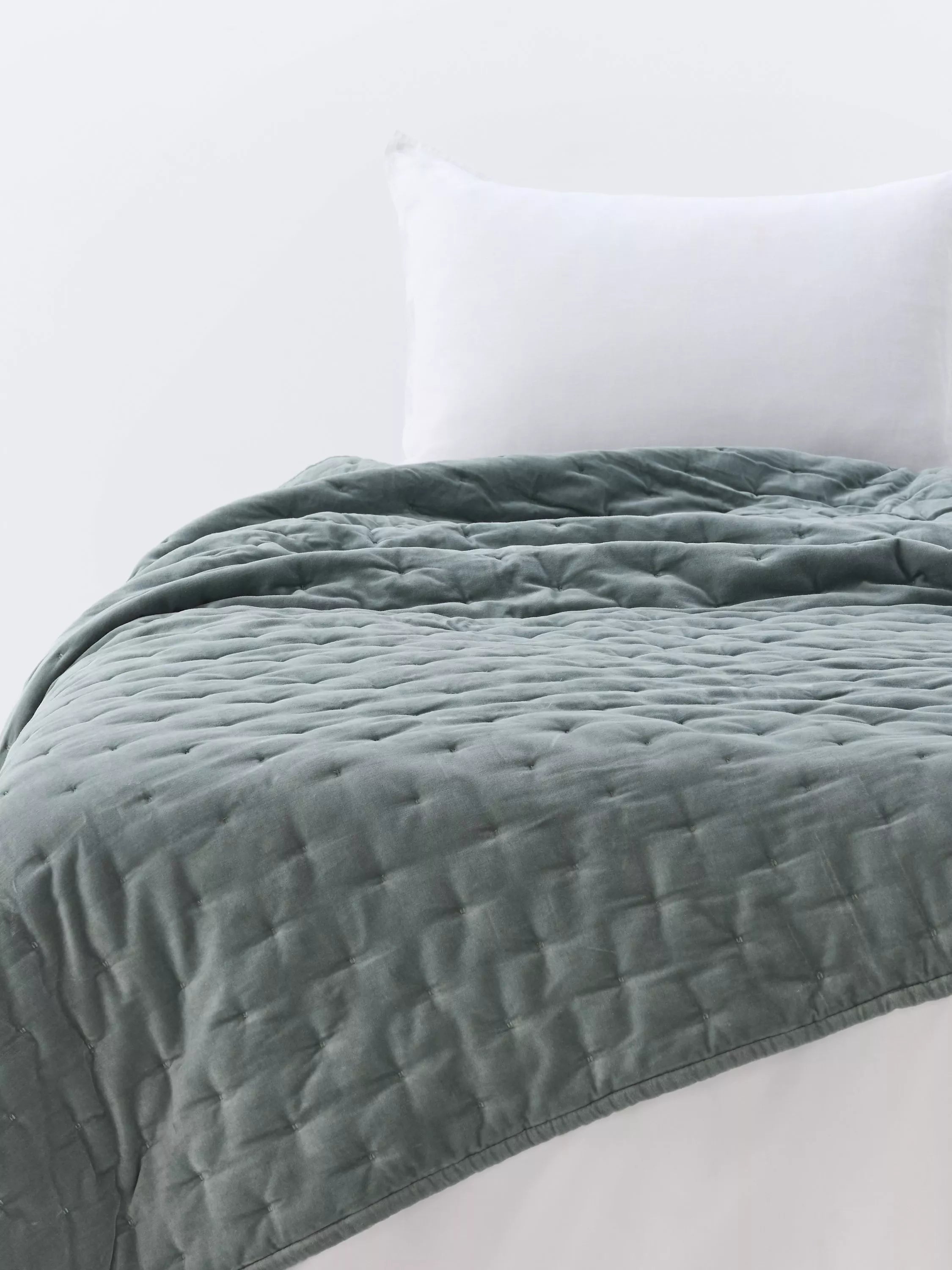 Soft velvet-textured quilted bedspread. Made of breathable cotton to give you a lightweight layer to your bed in summer or extra warmth in the winter.