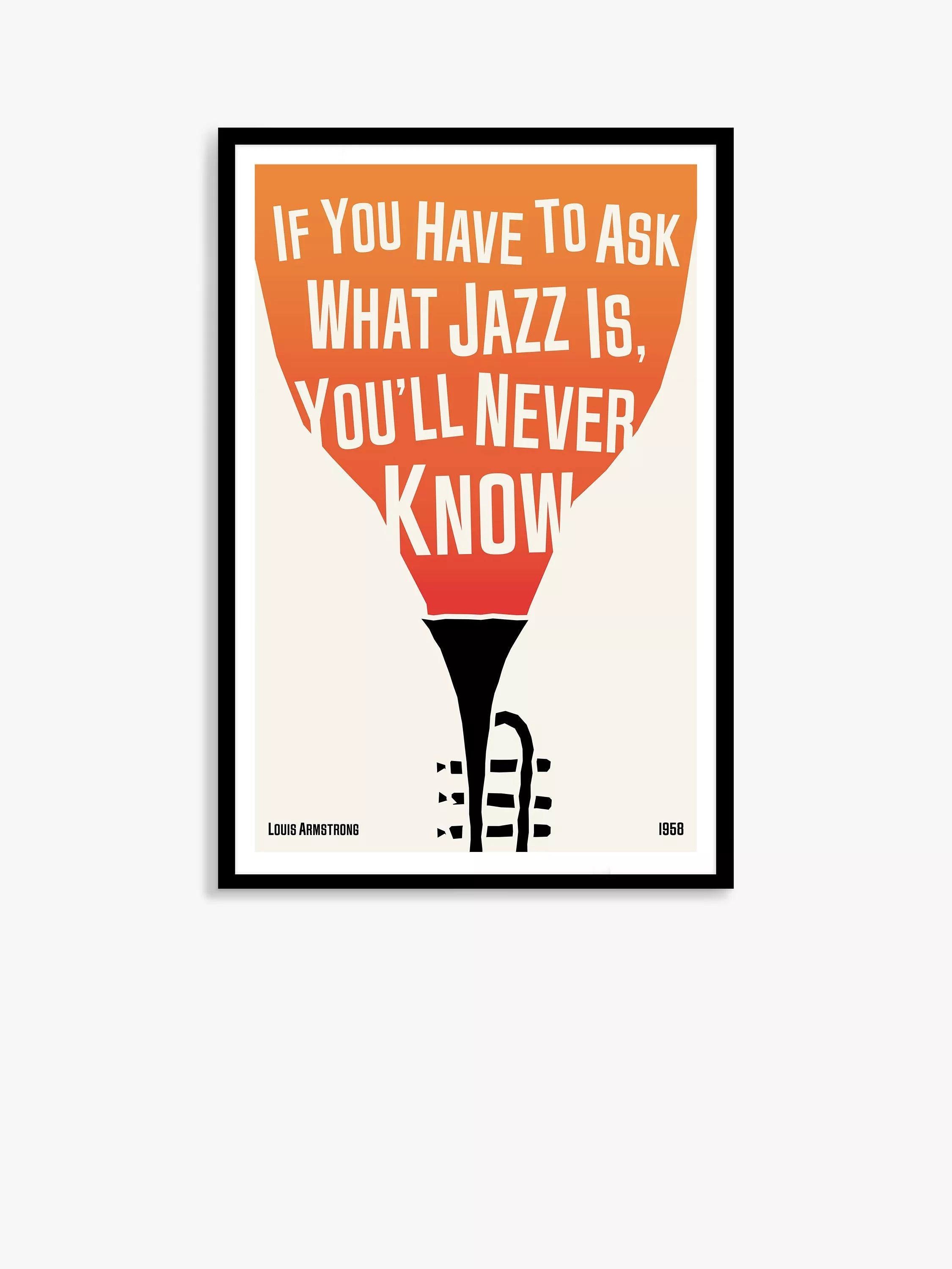Framed and glazed Louis Armstrong trumpet and jazz quote print by Dalston 606. Made in the UK and ready to hang on your wall.