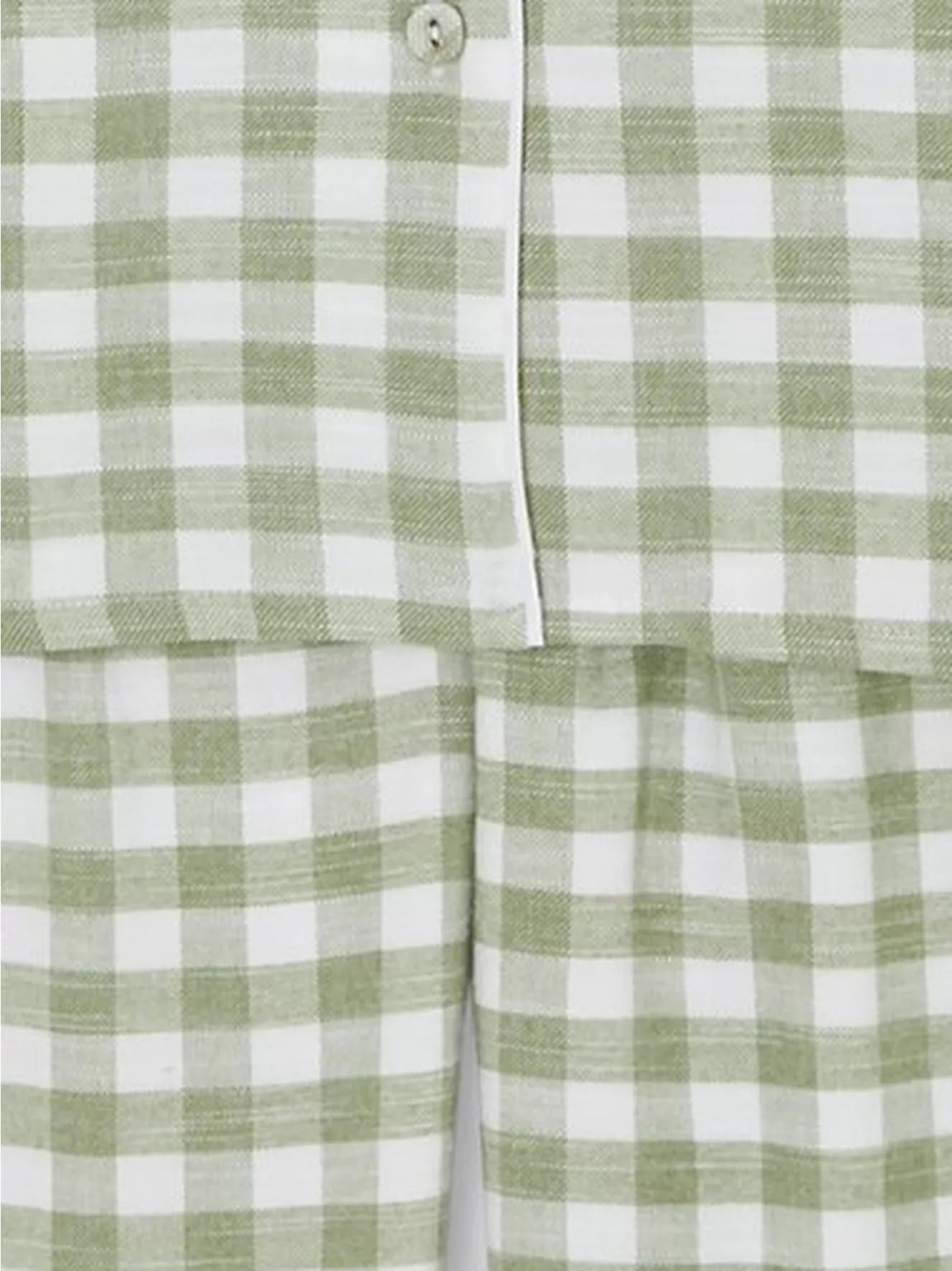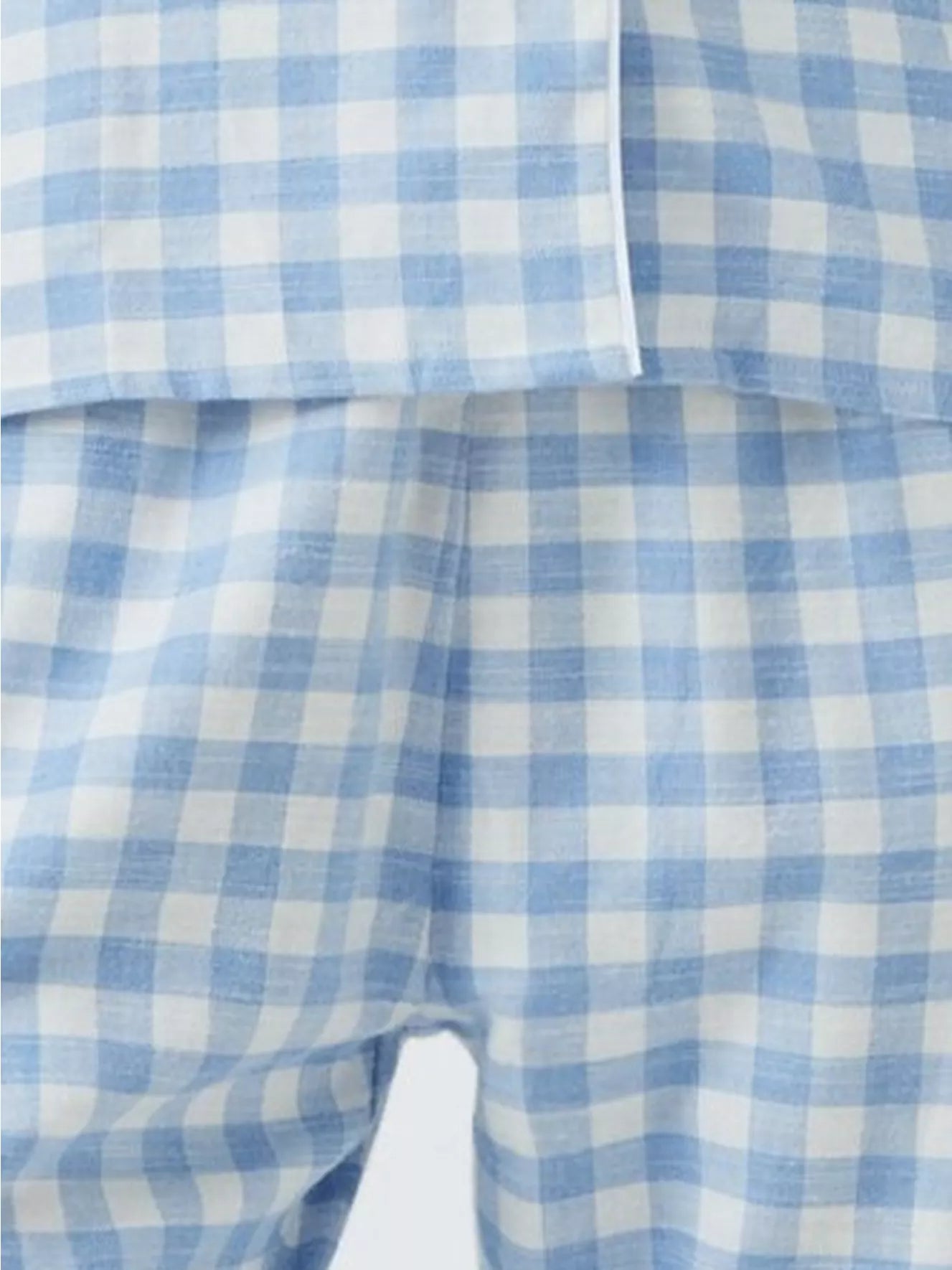 Just in case the classic shirt shape with revere collar and fabric-coloured buttons wasn't cute enough, we adorned this pyjama set with a timelessly charming gingham, too. The bottoms feature a fully elasticated waistband and handy side pockets.