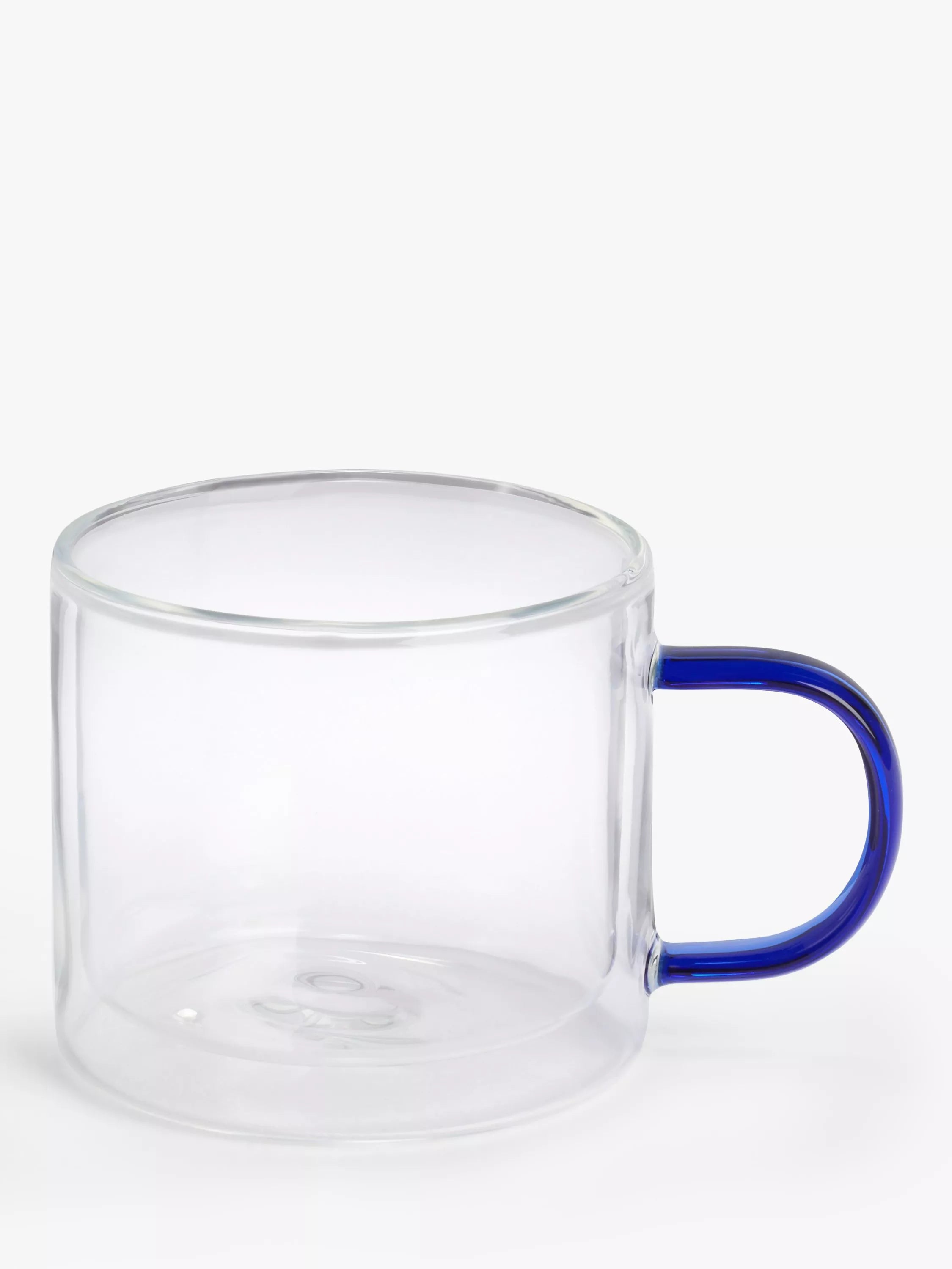 Coffee mug made of double-walled borosilicate glass to keep your beverage hot for longer and to protect your hand. Finished with a colourful handle, this design is dishwasher and microwave safe for easy everyday use.