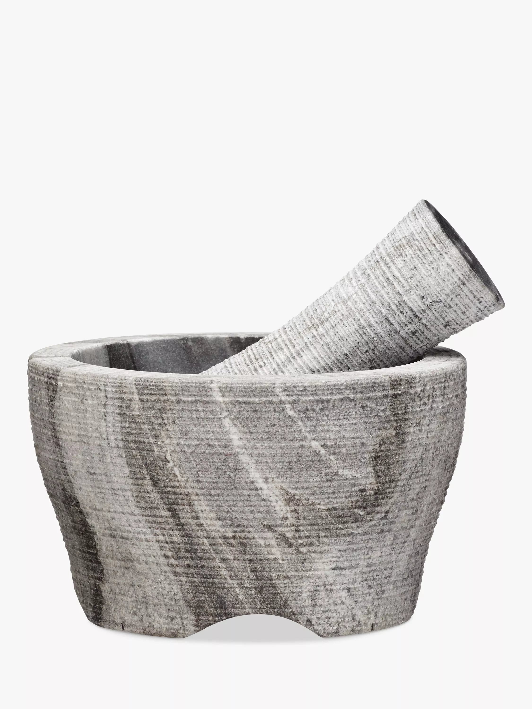 Elevate your culinary creations with this elegant John Lewis grey marble pestle and mortar. Perfect for grinding spices, herbs, and nuts, this durable kitchen essential adds a touch of sophistication to any kitchen.