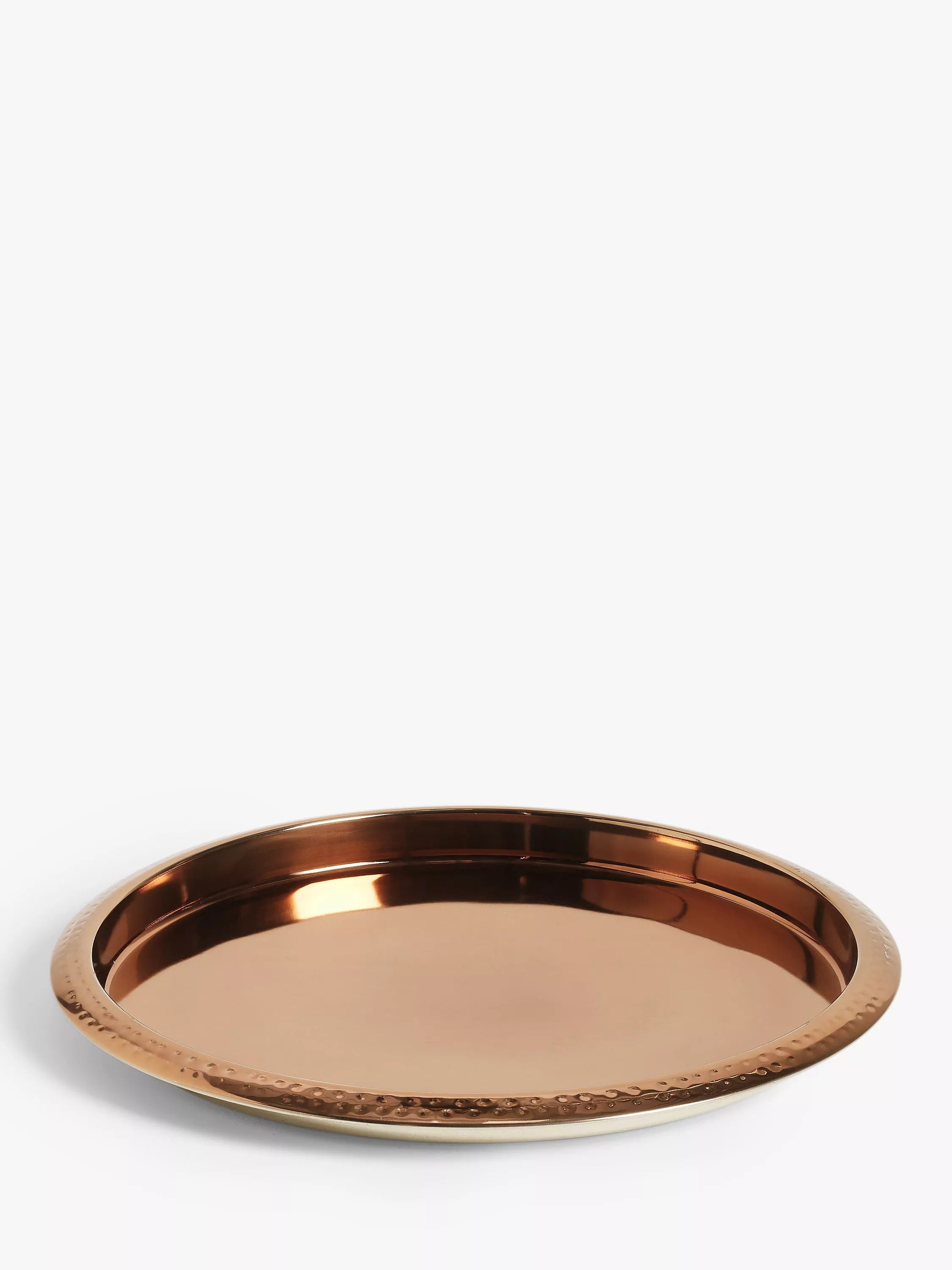Serve drinks in style with this polished, copper-effect tray. The top edge has been given an attractive hammered effect.